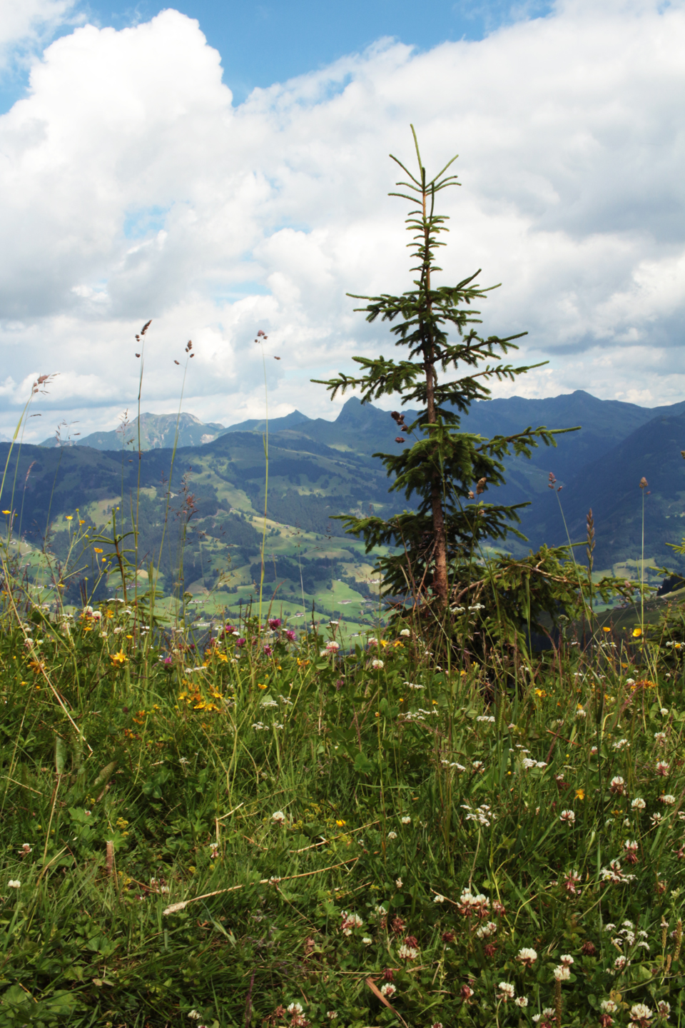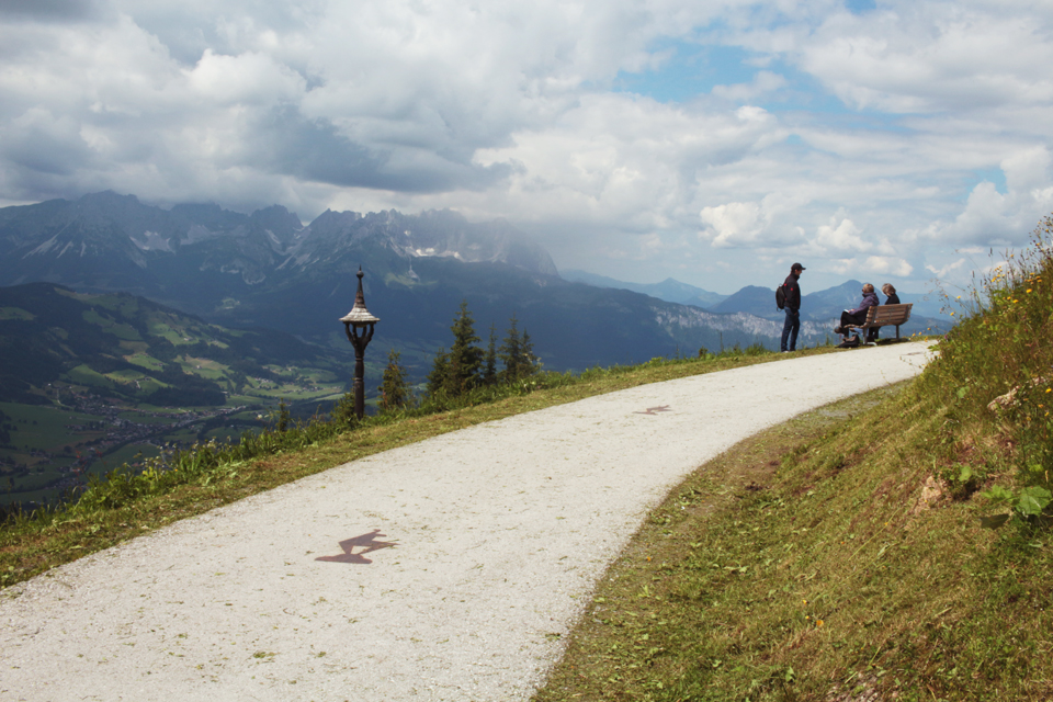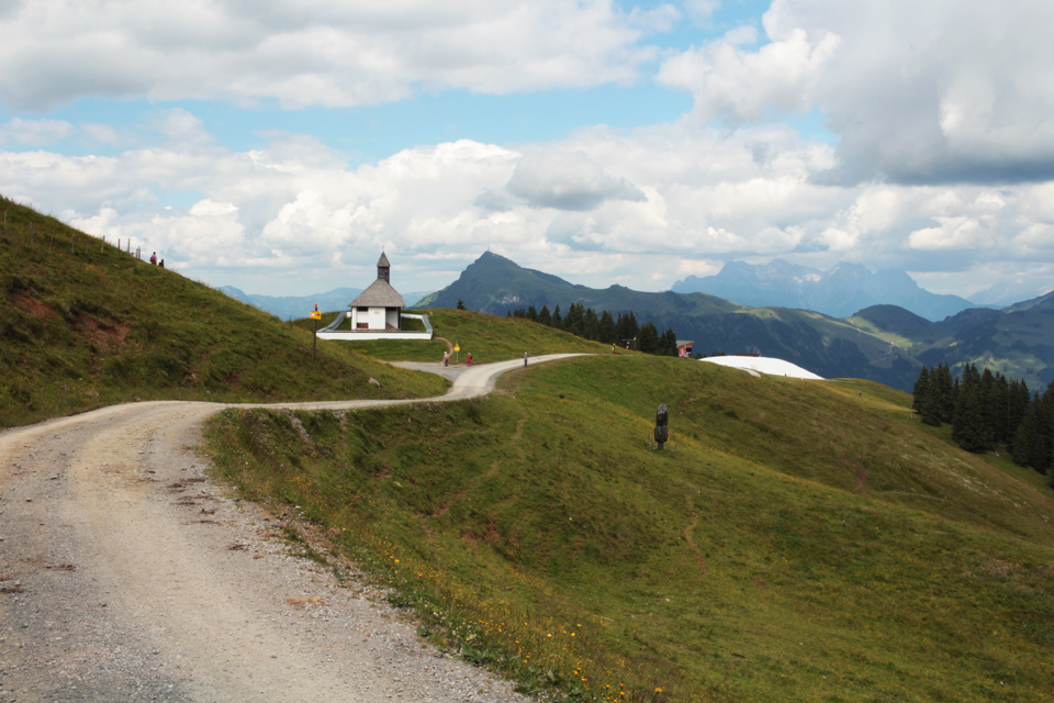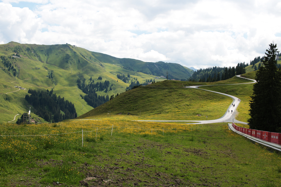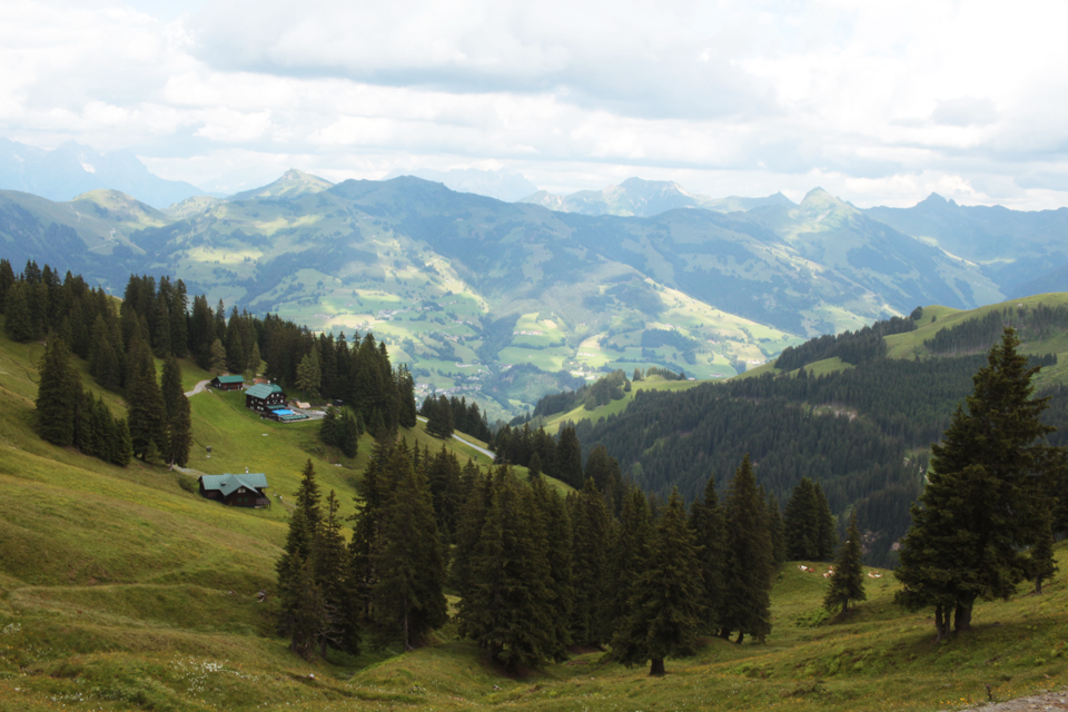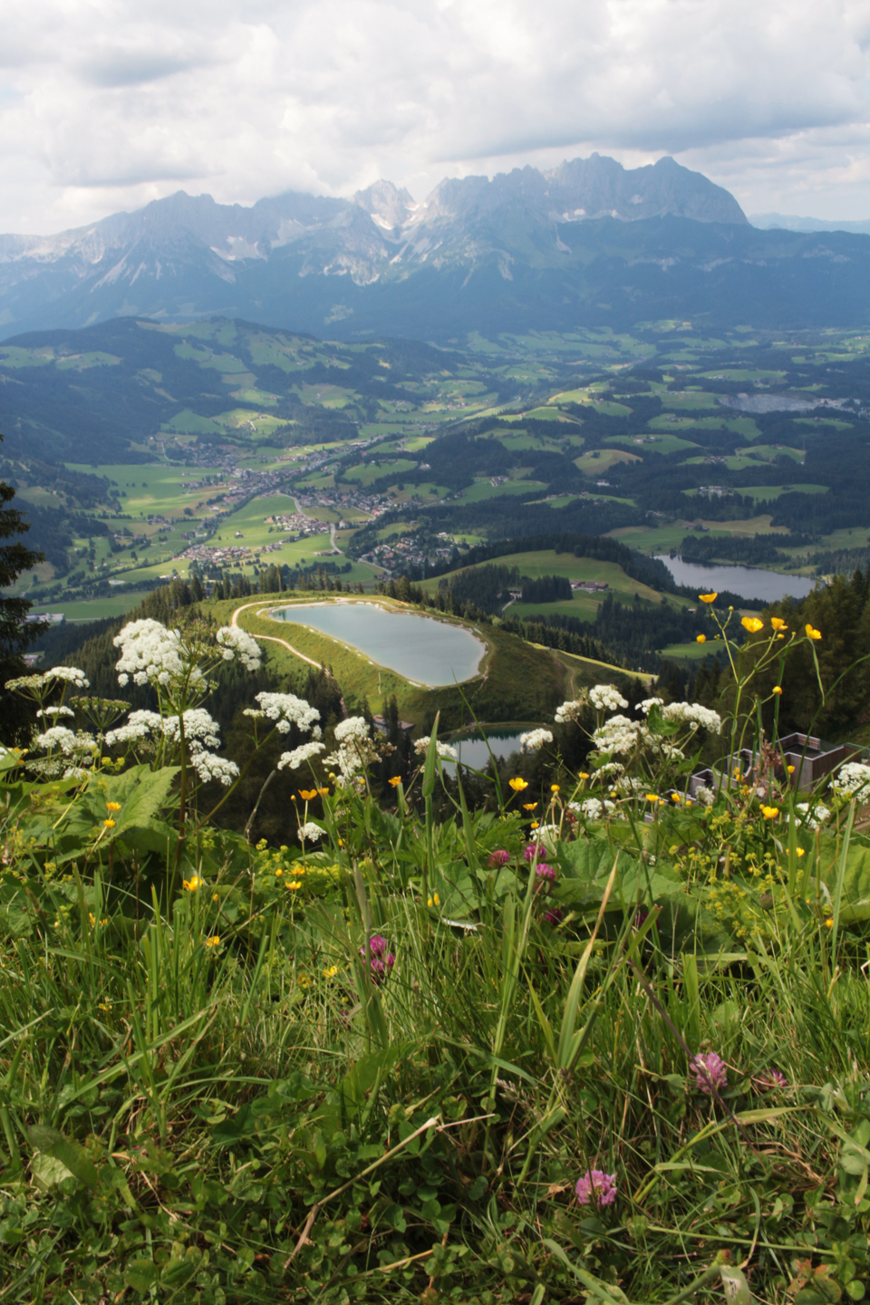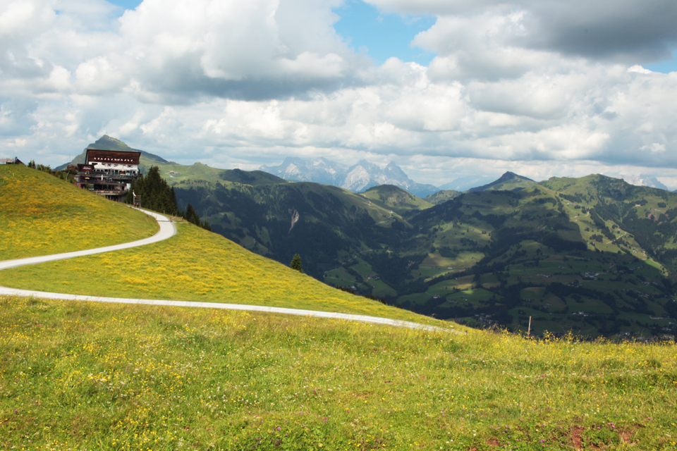 In July I went to Kitzbühel in Austria for work. I was there to run a workshop in the local middle school, and the mayor gave me and my three co-workers tickets for the local ski lift. The weather was pretty bad the week I was there, but was fine enough one day to go to the top of the Hahnenkamm, one of the local peaks. Kitzbühel is 700m above sea level, the ski lift takes you to 1200m and then there’s a fairly easy walk up to the 2000m height of the Ehrenbachhöhe.