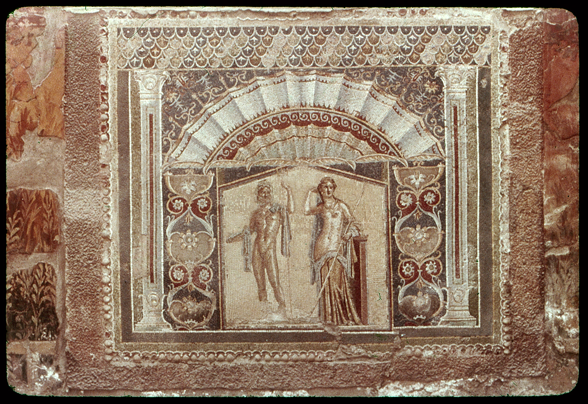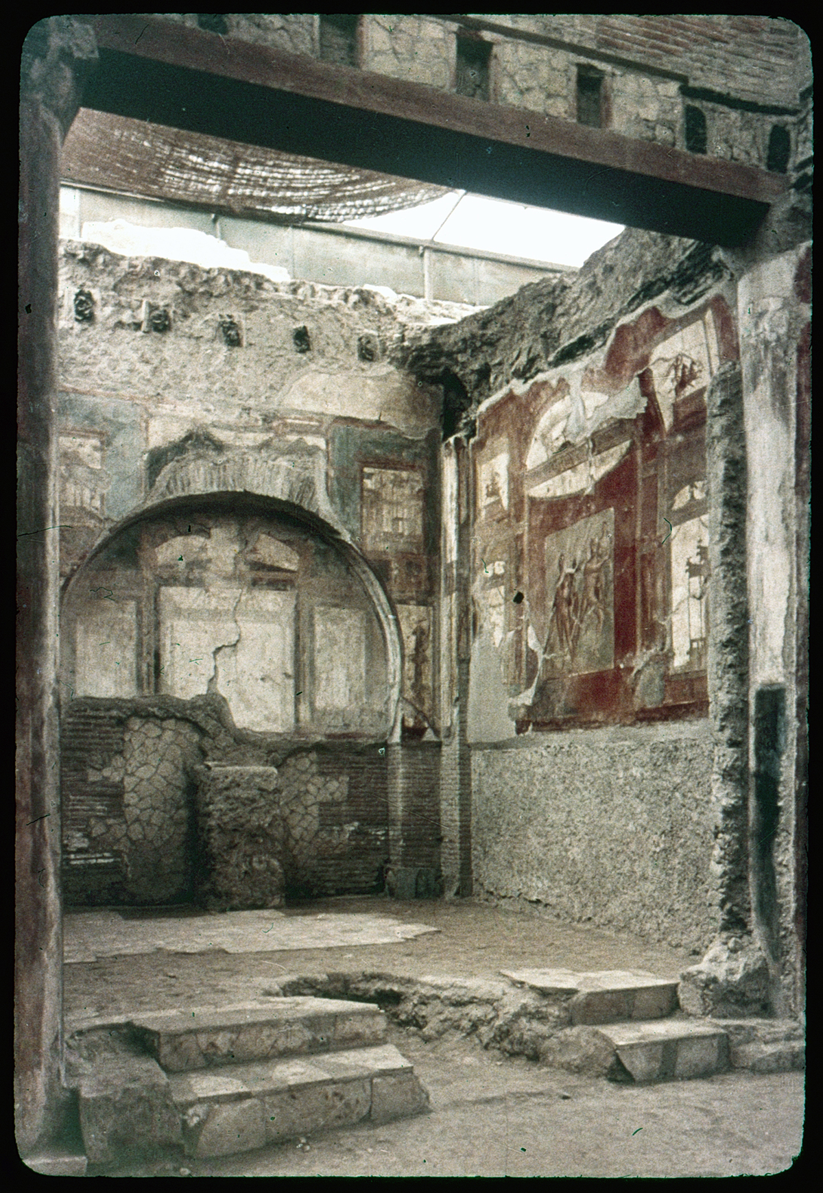 Remnants of murals in a shrine dedicated to Emperor Augustus. At the time of the explosion, Titus had just become Emperor after his father Vespasian died of diarrhea. Titus himself dies two years later from illness to be replaced with his deeply unpopular brother Domitian. So unpopular he was the last member of his dynasty.