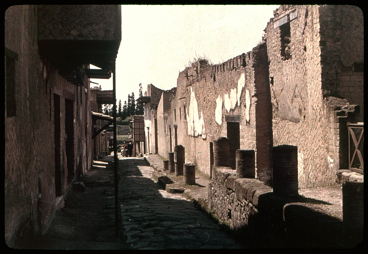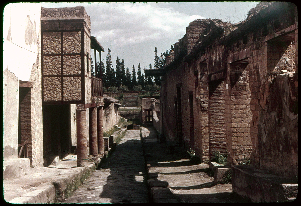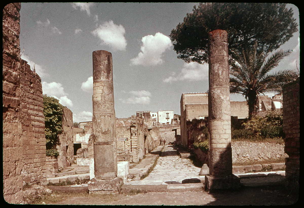 When clearing out my grandparents’ house a couple of years ago I found seven packets of these 60s tourist slides of various places around the Mediterranean. I’ve been scanning and restoring them. First up, these from Herculaneum.
