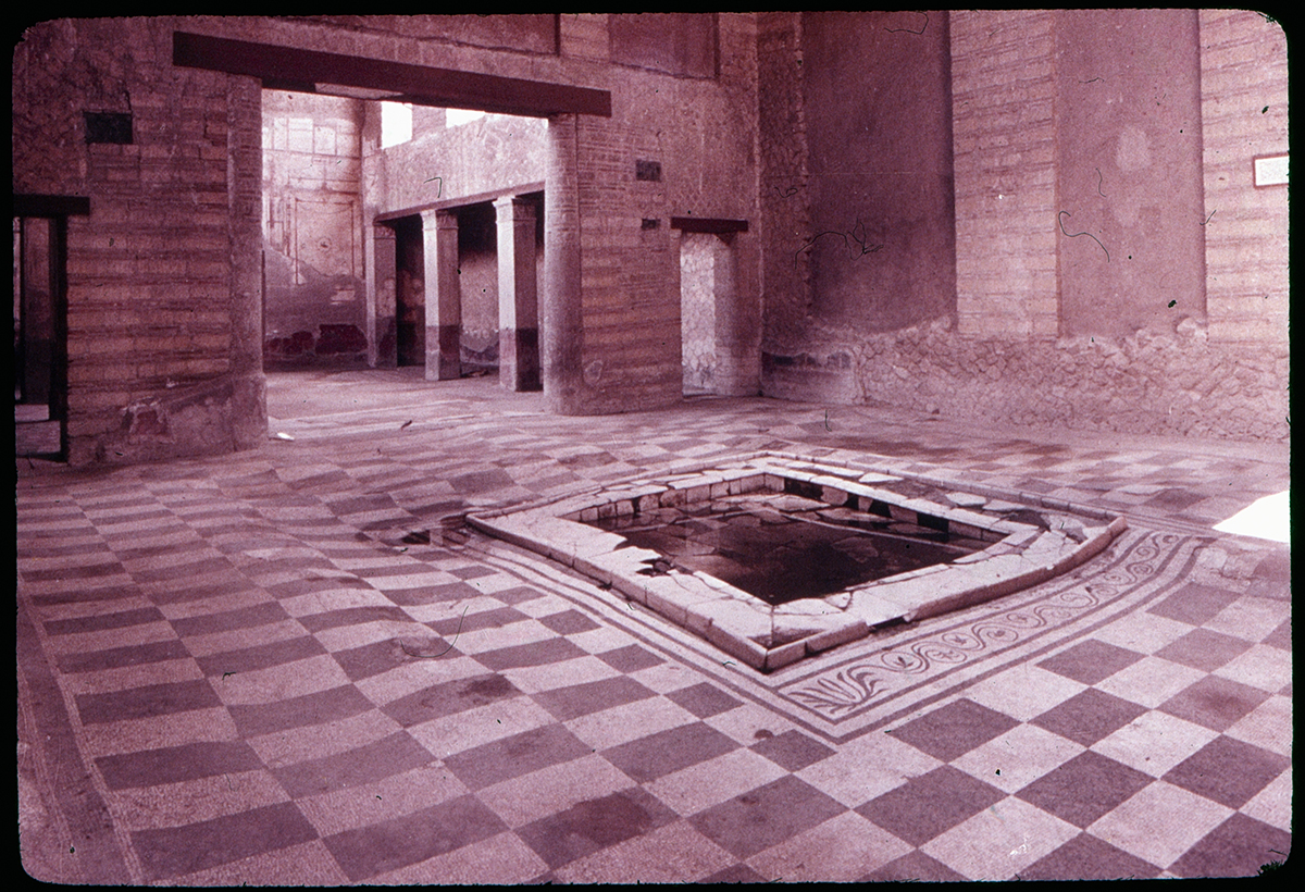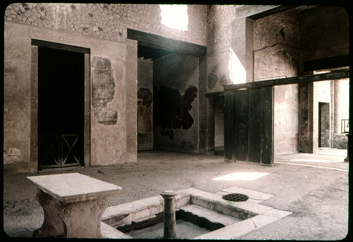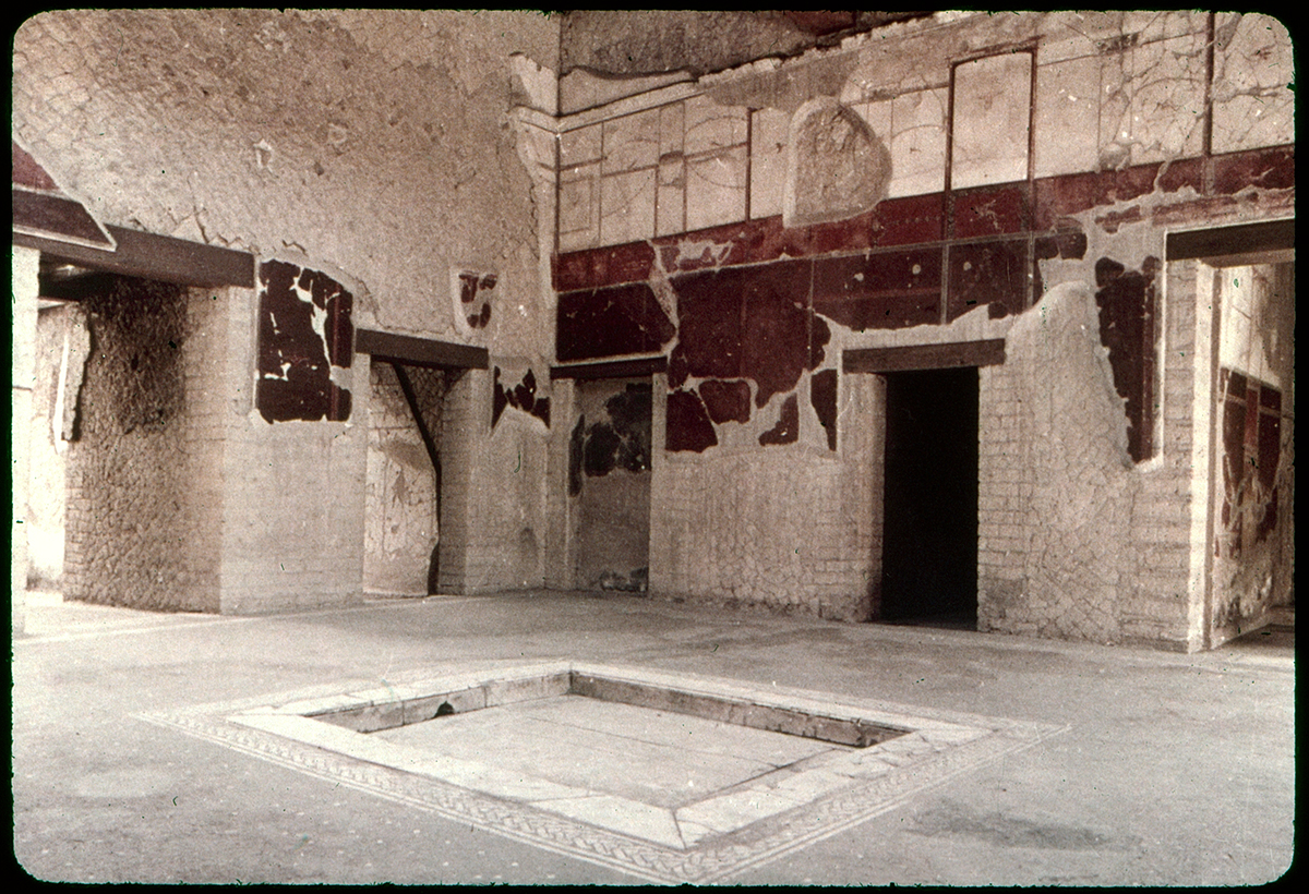 After the colours are restored to the original- the central hall (atrium) of a richer house. The walls would originally have had plaster and murals