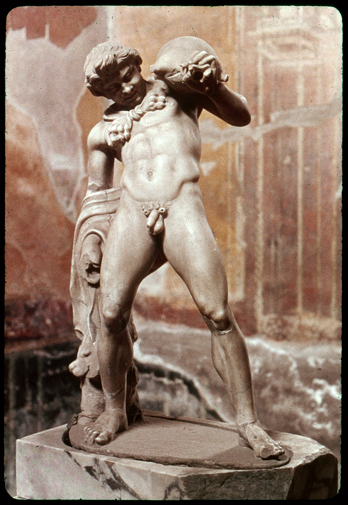 Satyr statue from the House of the Deer. Look at his leopard skin cloak and goatskin bag of wine. He’s ready to party.