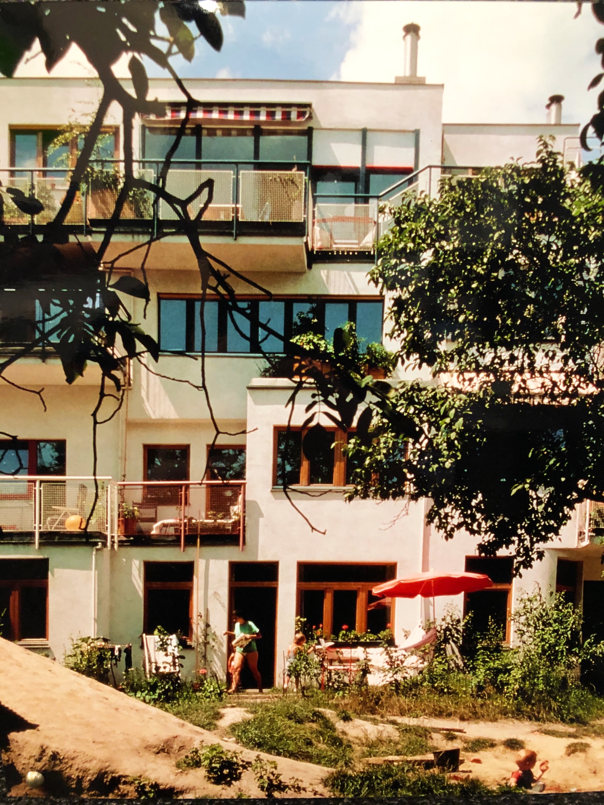 1970s artist flat in Vienna. It was created from a tall narrow space, with different balconies holding areas like the bedroom and studio.