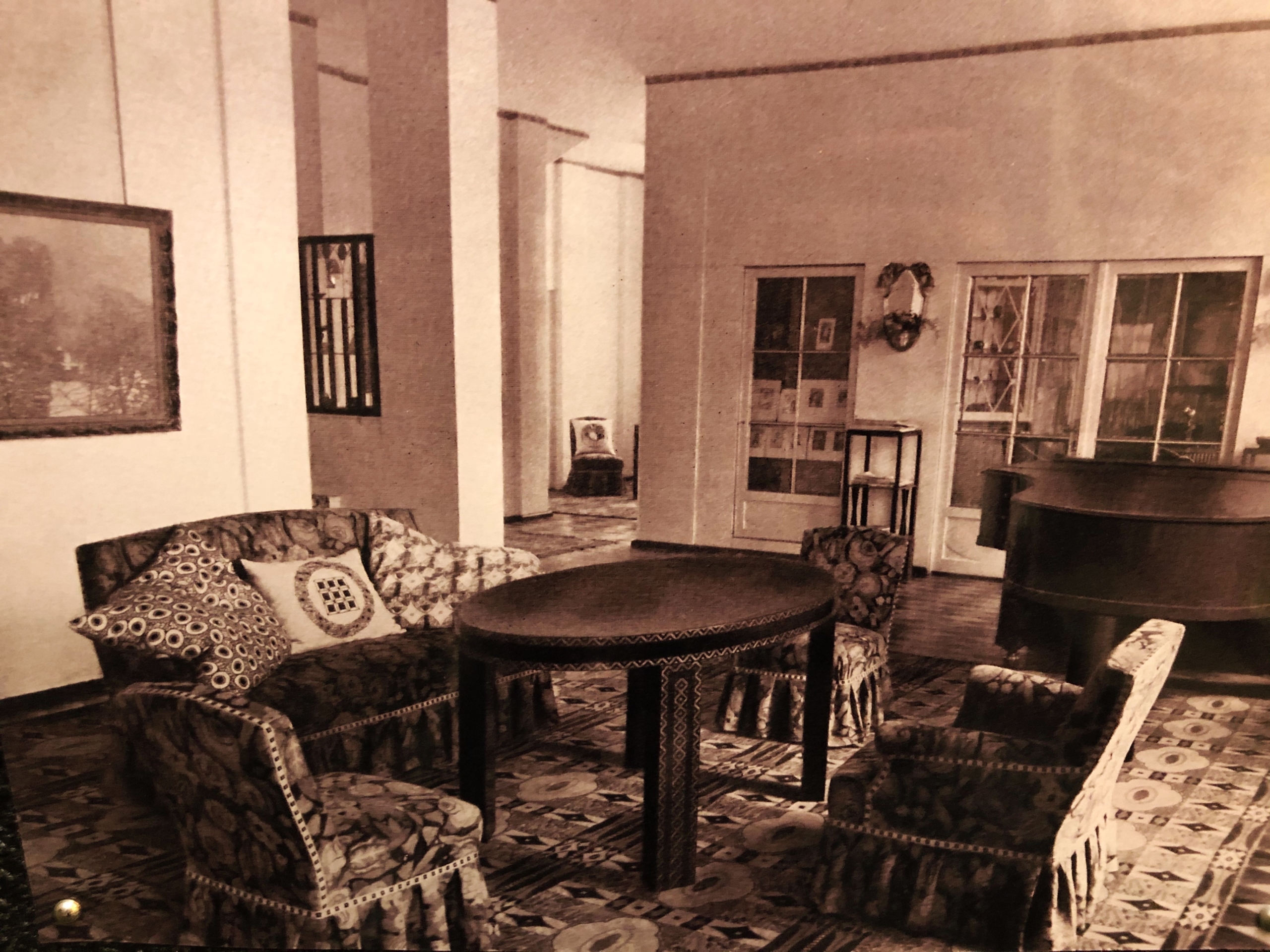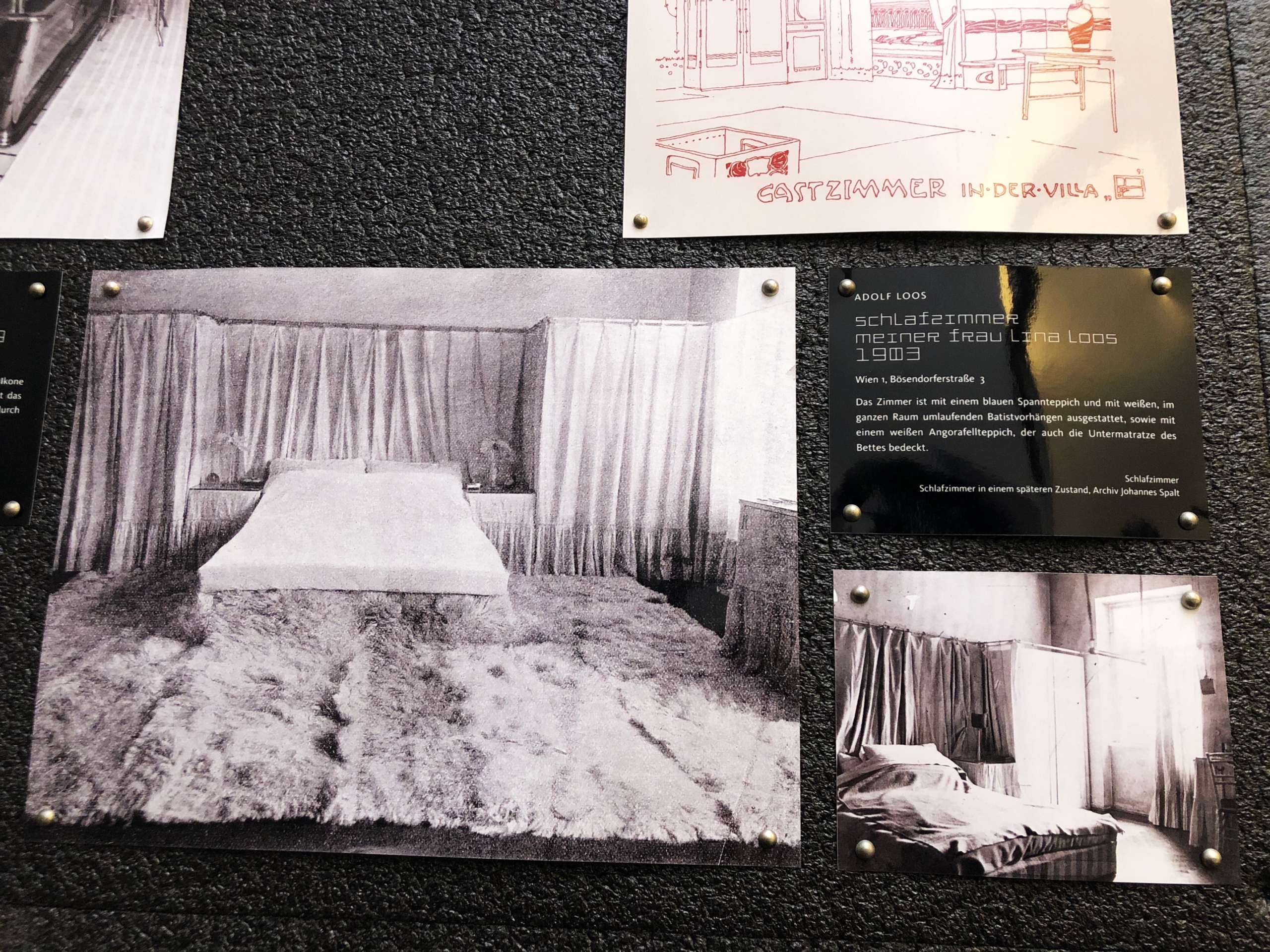 Luxury flat interior, 1905 but looking extremely 60s. I liked the exhibition style of lots of photos pinned to a board.