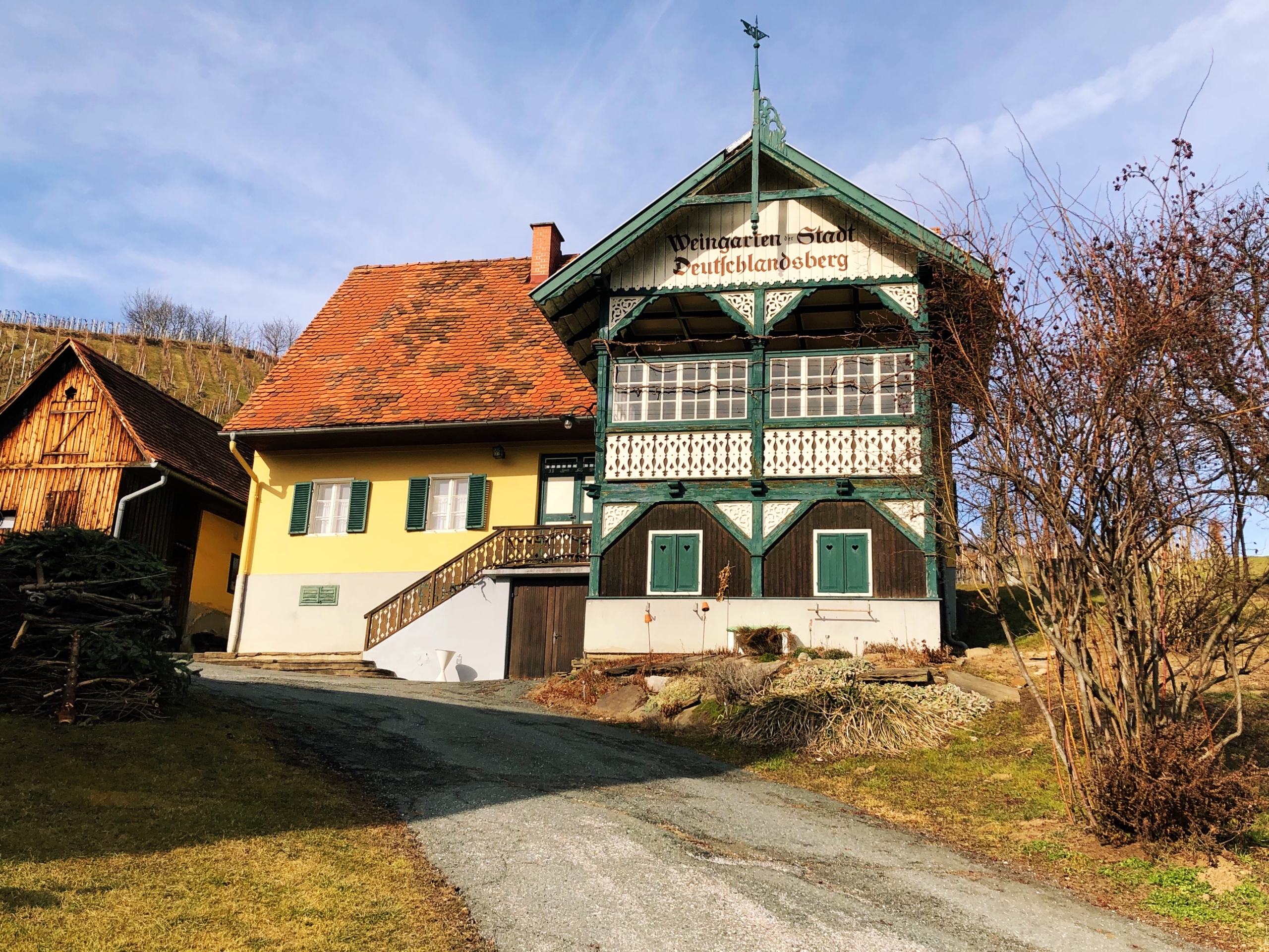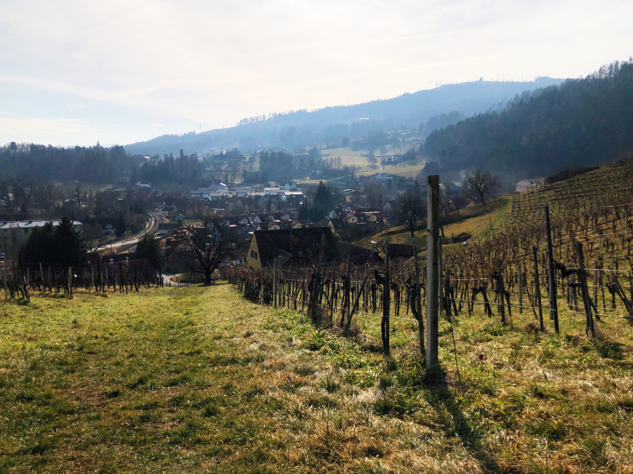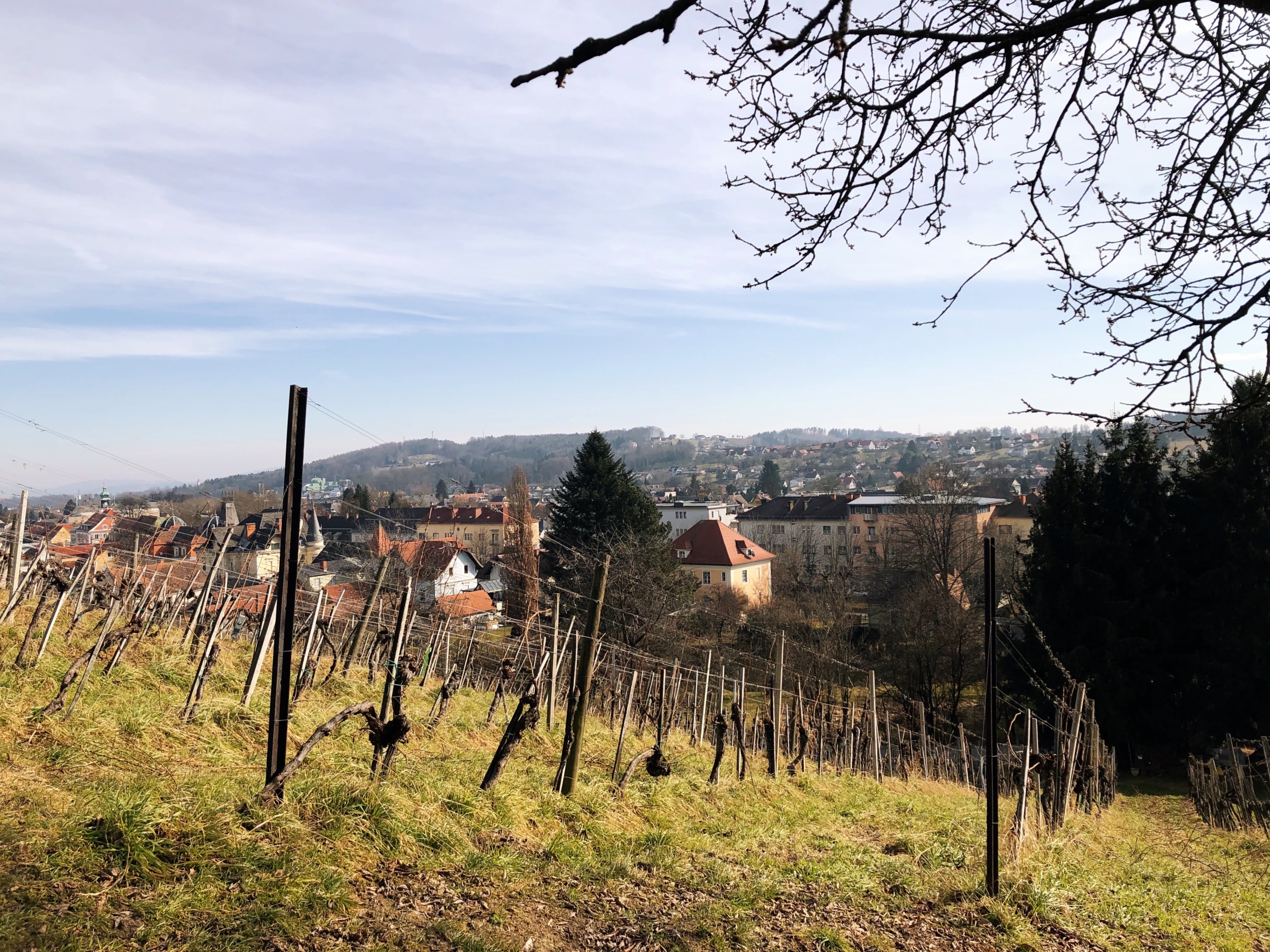 My next work assignment was in Deutschlandsberg, a small town at the foot of the Koralm Alps, near the Slovenian border. (Austria is a lot further south and east than people imagine). I was there three years ago (at a different school), when it was snowing heavily. This time I arrived to brilliant sunshine, and went for a walk up in the vineyard filled hills with Jemeala, one of the other teachers.