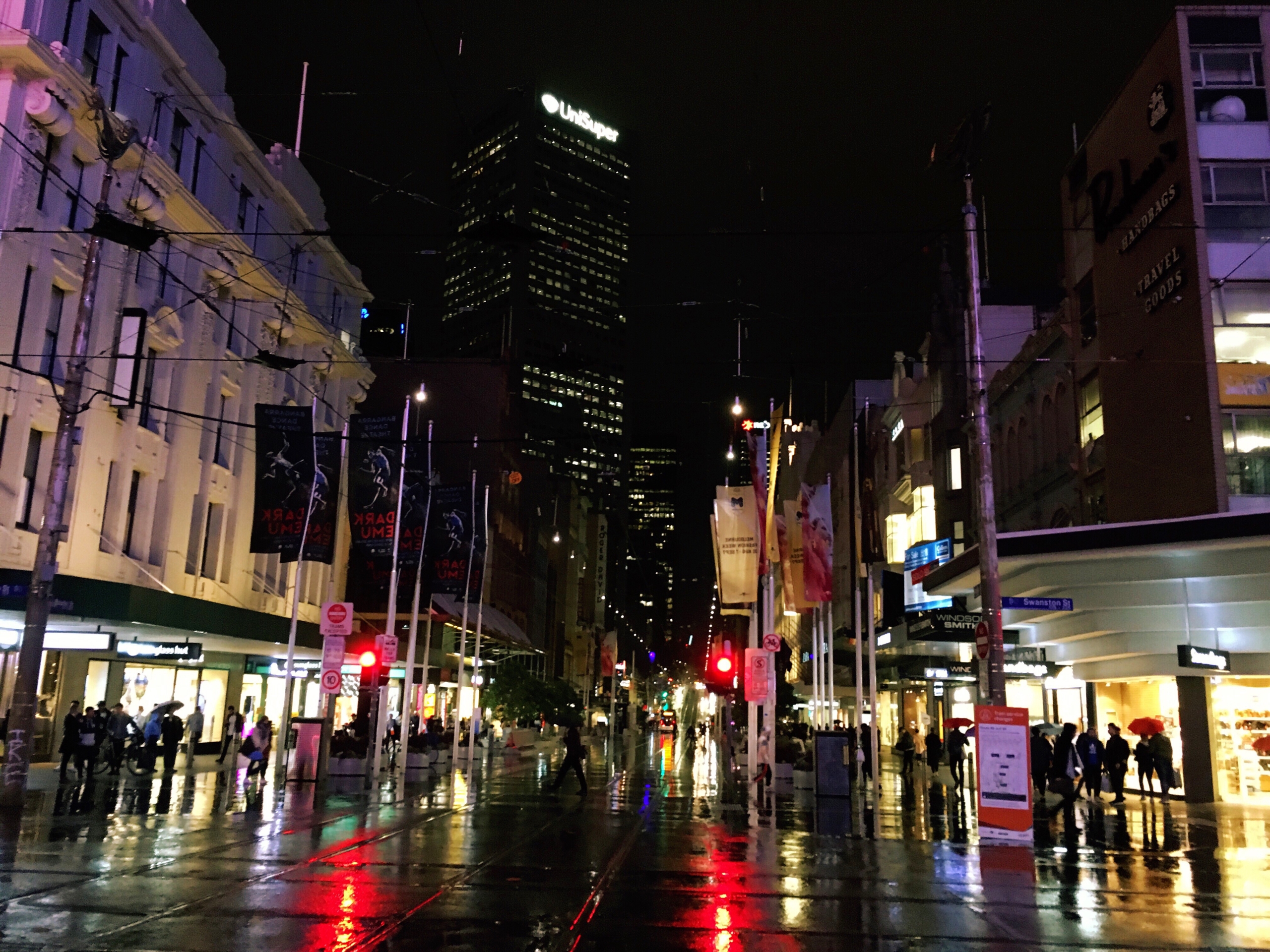 I’m not really a fan of shopping centres, but I had to go round all the department stores to get a new suitcase after the airline broke my (to be fair, knackered) case. Here disproves people’s idea that Melbourne is always a hot, sunny place. I was there at the end of their winter (September is like our March) and there was plenty of rain to be had.