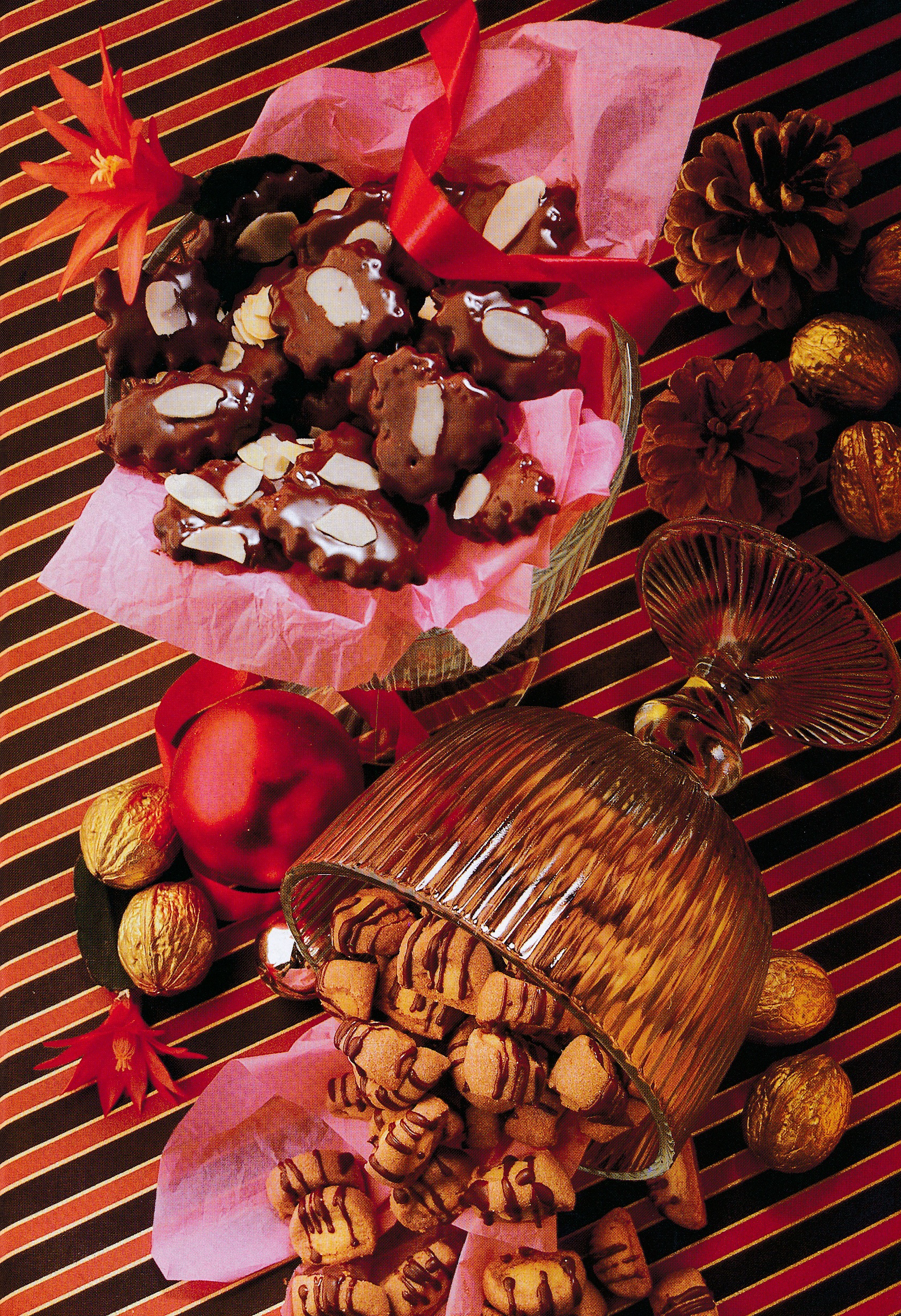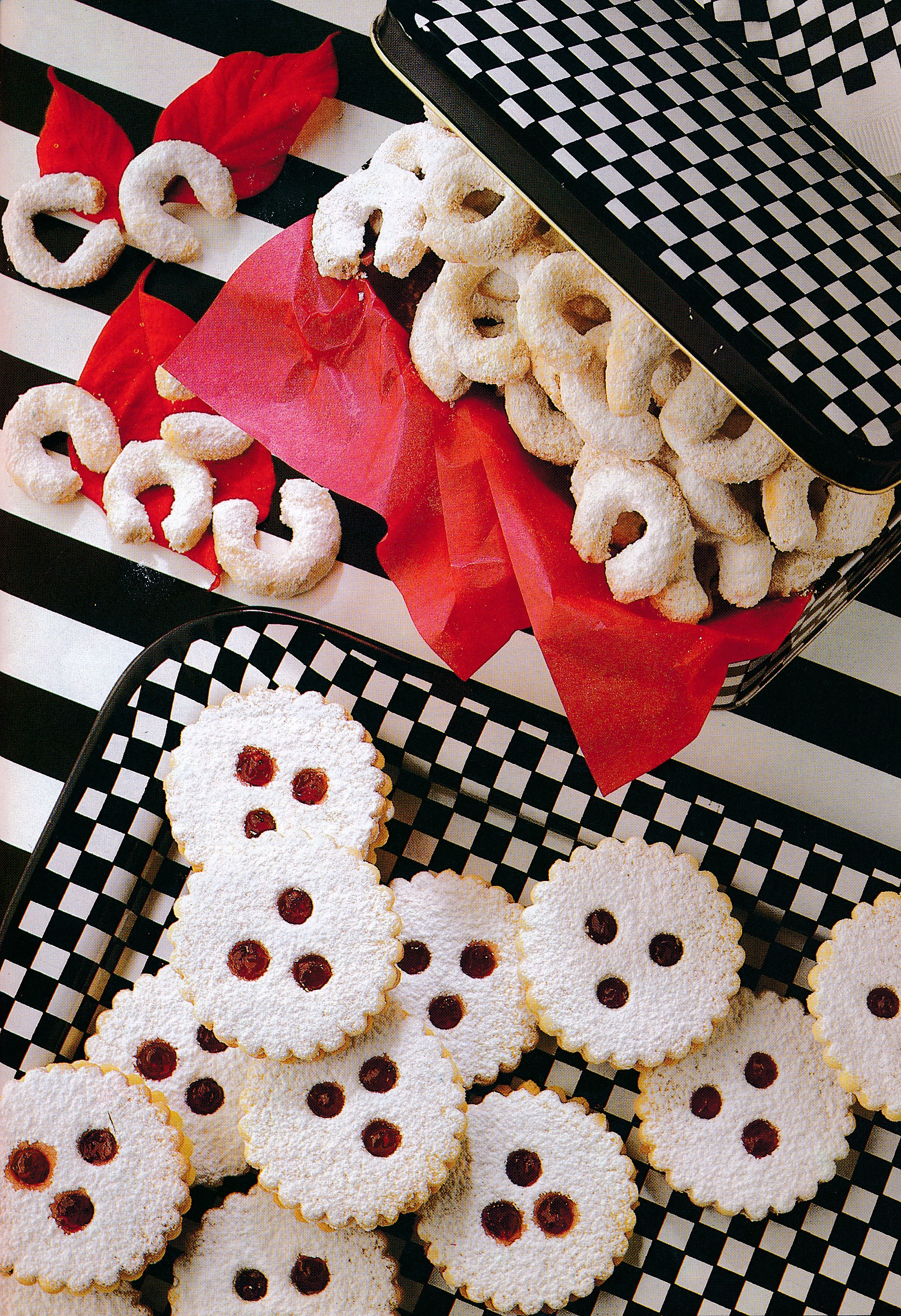 The ones with jam are Linzer Augen, an Austrian biscuit similar to a Jammy Dodger, but with redcurrant jam rather than strawberry.