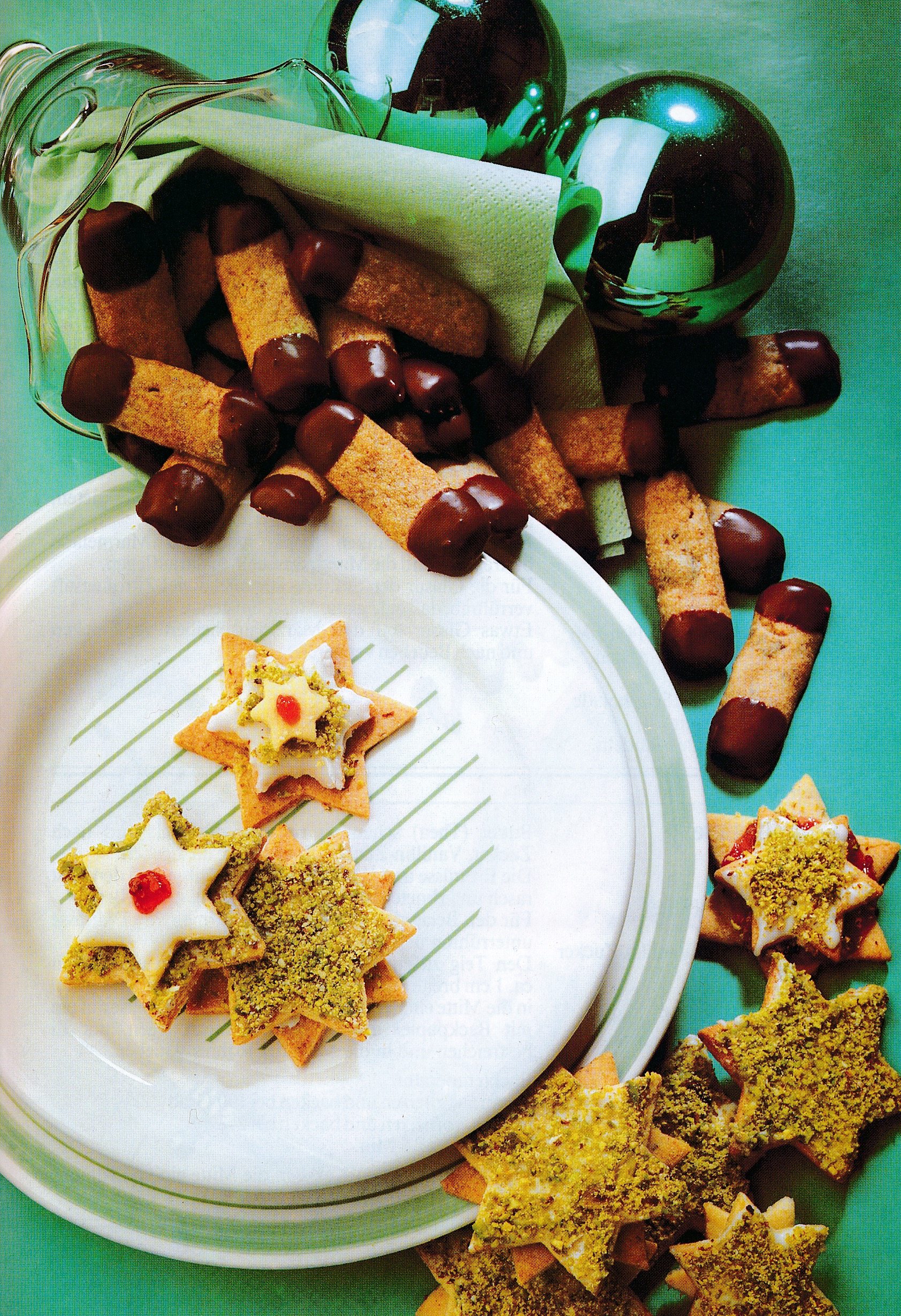 The star biscuits are also stuck together with currant jam, and topped with crushed pistachios.