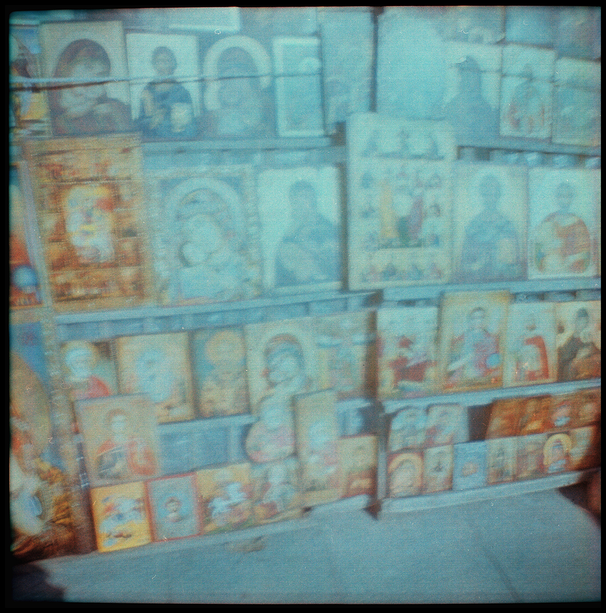 Something went wrong with these two shots of the racks of souvenir Orthodox icons. It’s still just about legible what they are.