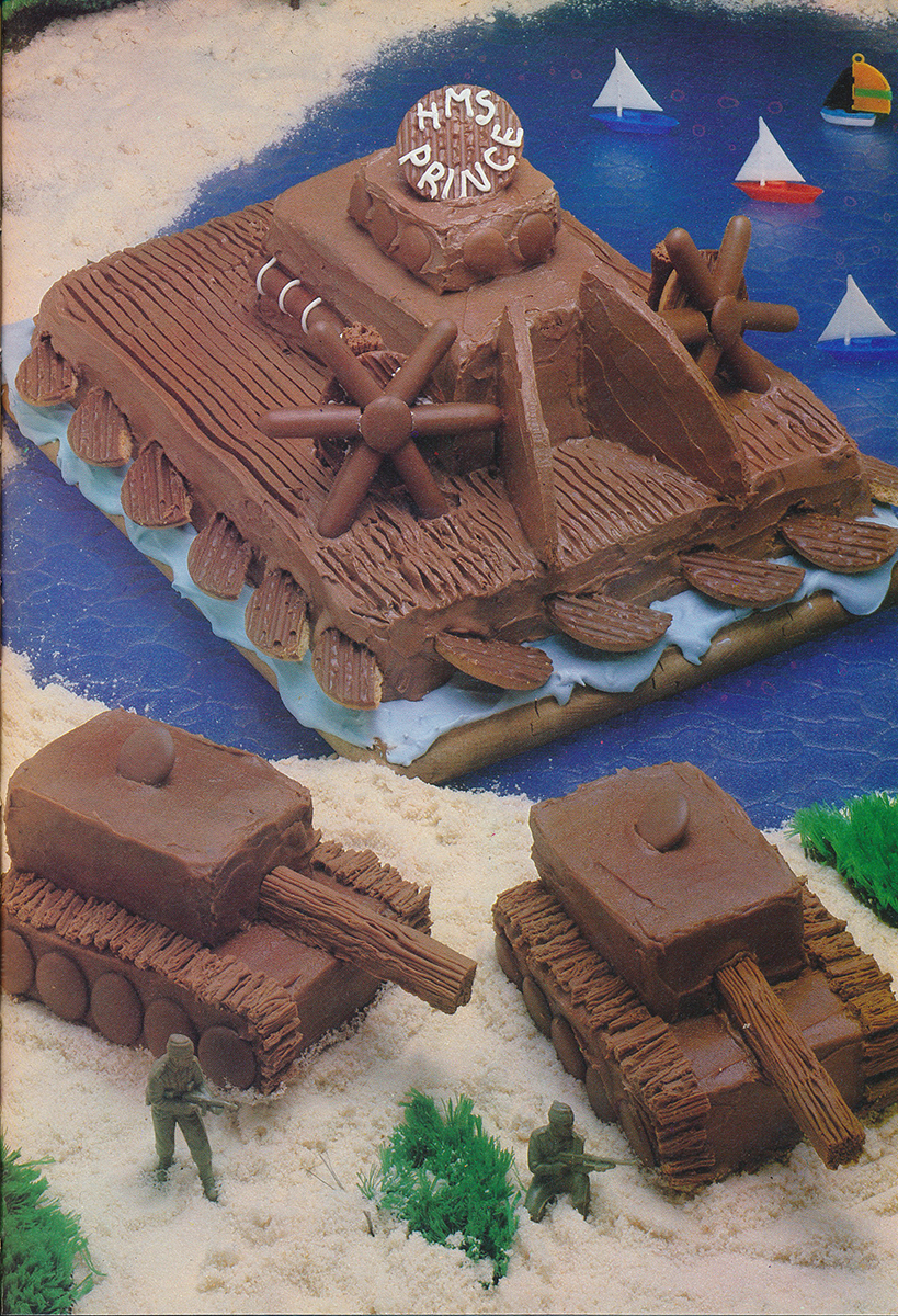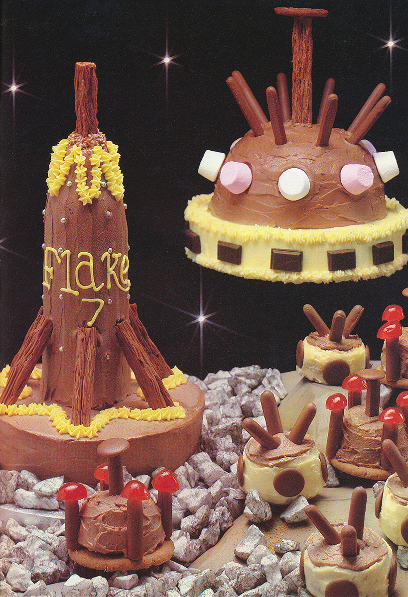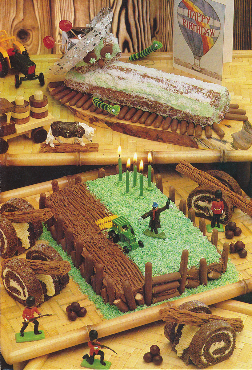 I got this late 70s/early 80s book from a charity shop a while ago. A lot of families in the UK had it when I was a kid I think. I got it out because I promised to make my friend a really ludicrous birthday cake from inside. The recipes are fine, various flavoured sponge cakes with buttercream icing (albeit with gratuitous Cadbury’s product placement in every recipe). It’s the choice of cake themes in the book that’s a bit odd …