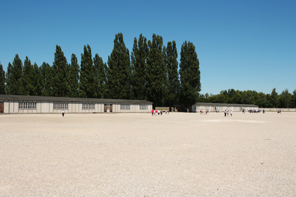 This is the parade ground where the prisoners were forced to pointlessly line up and be counted for hours in all weathers, wearing nothing but thin pyjamas.