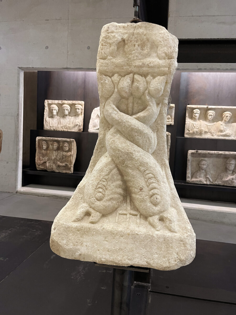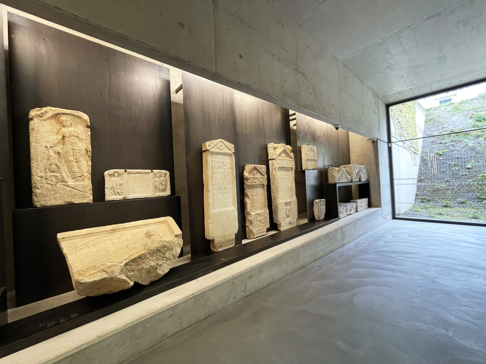 Once you know the abbreviations, reading Roman tombstones is fun. The one in the centre is for two freed slaves named Publius Musculei Vicarius, and Musculeia Sura who lived in Slovenia. The tombstone was paid for by their former owner/patron, Publius Musculei. (Freed slaves took the family name).