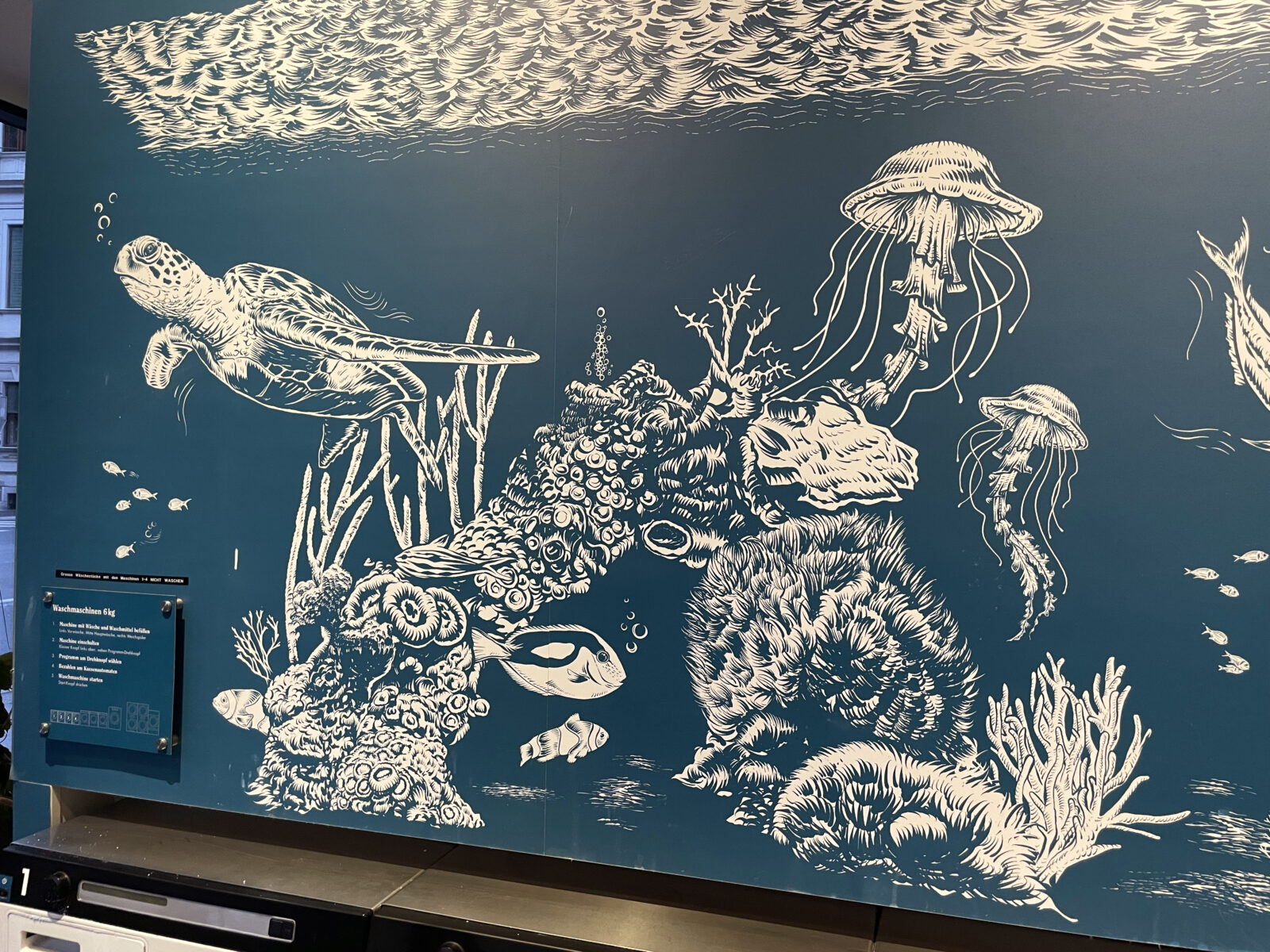 Finding a laundrette on the road is the Holy Grail, and the one in central Graz has this calming mural.