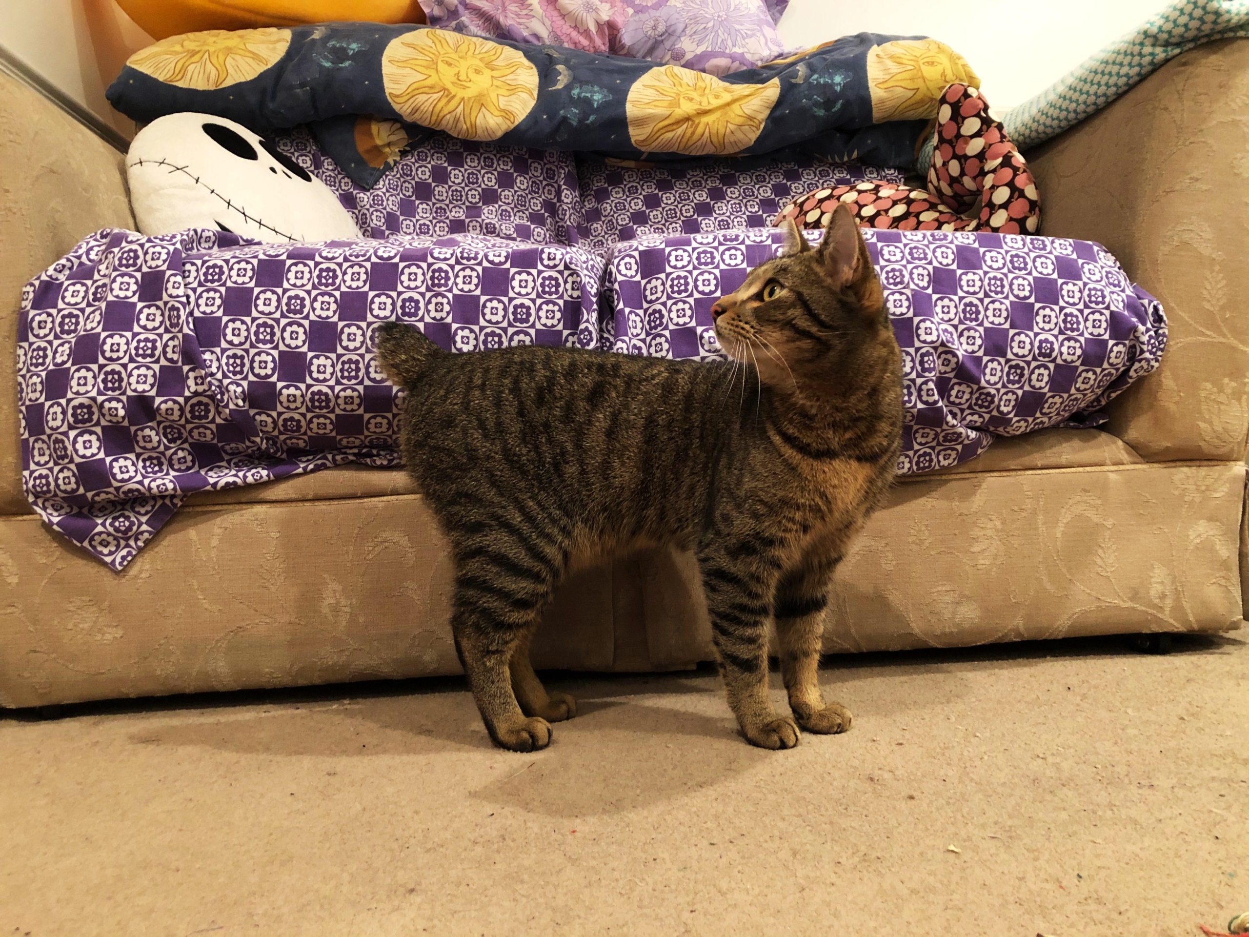 The cat is very disgruntled because I moved things and changed the smells without his permission or supervision.