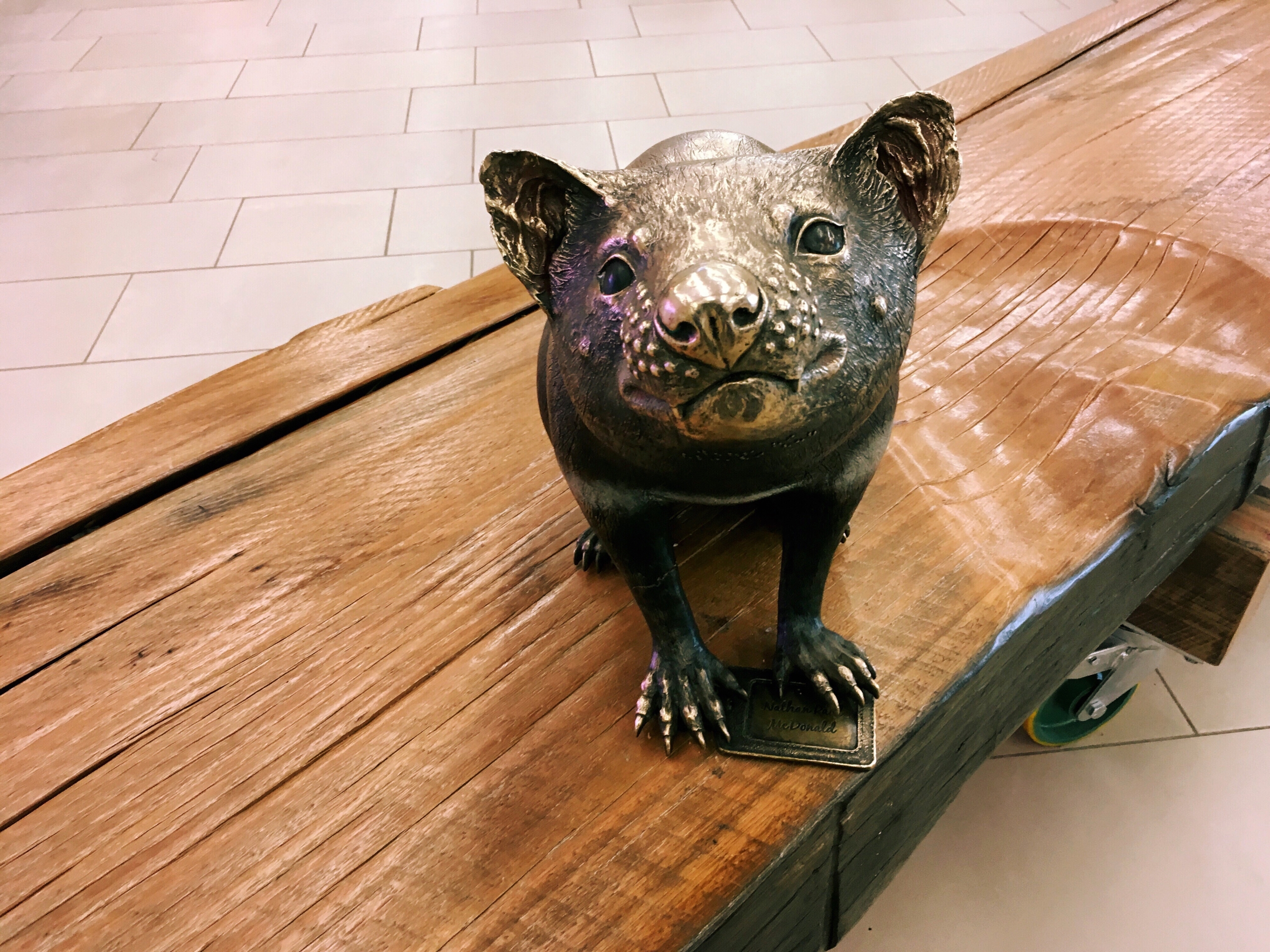 Winsome melancholy Tasmanian devil in the airport. Not shown: shoeless hippies playing the ukelele. We’re not in Melbourne any more.