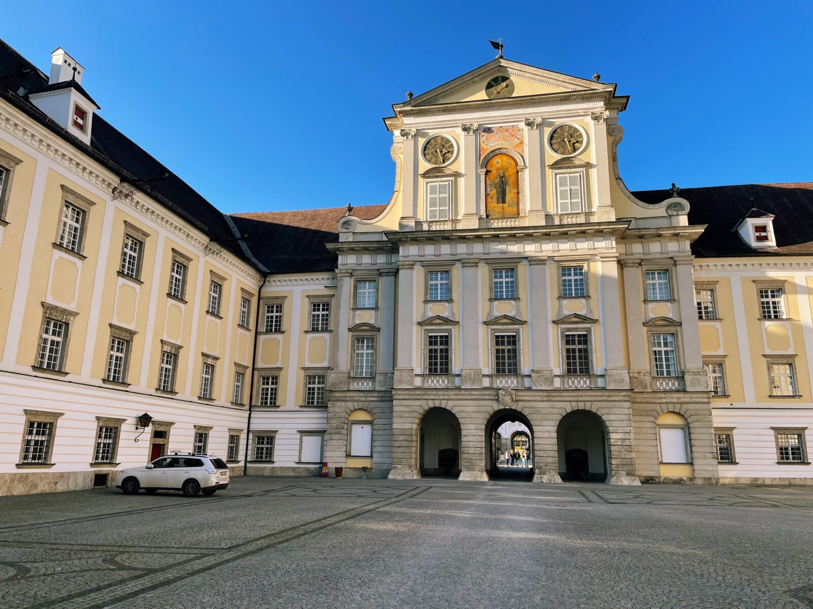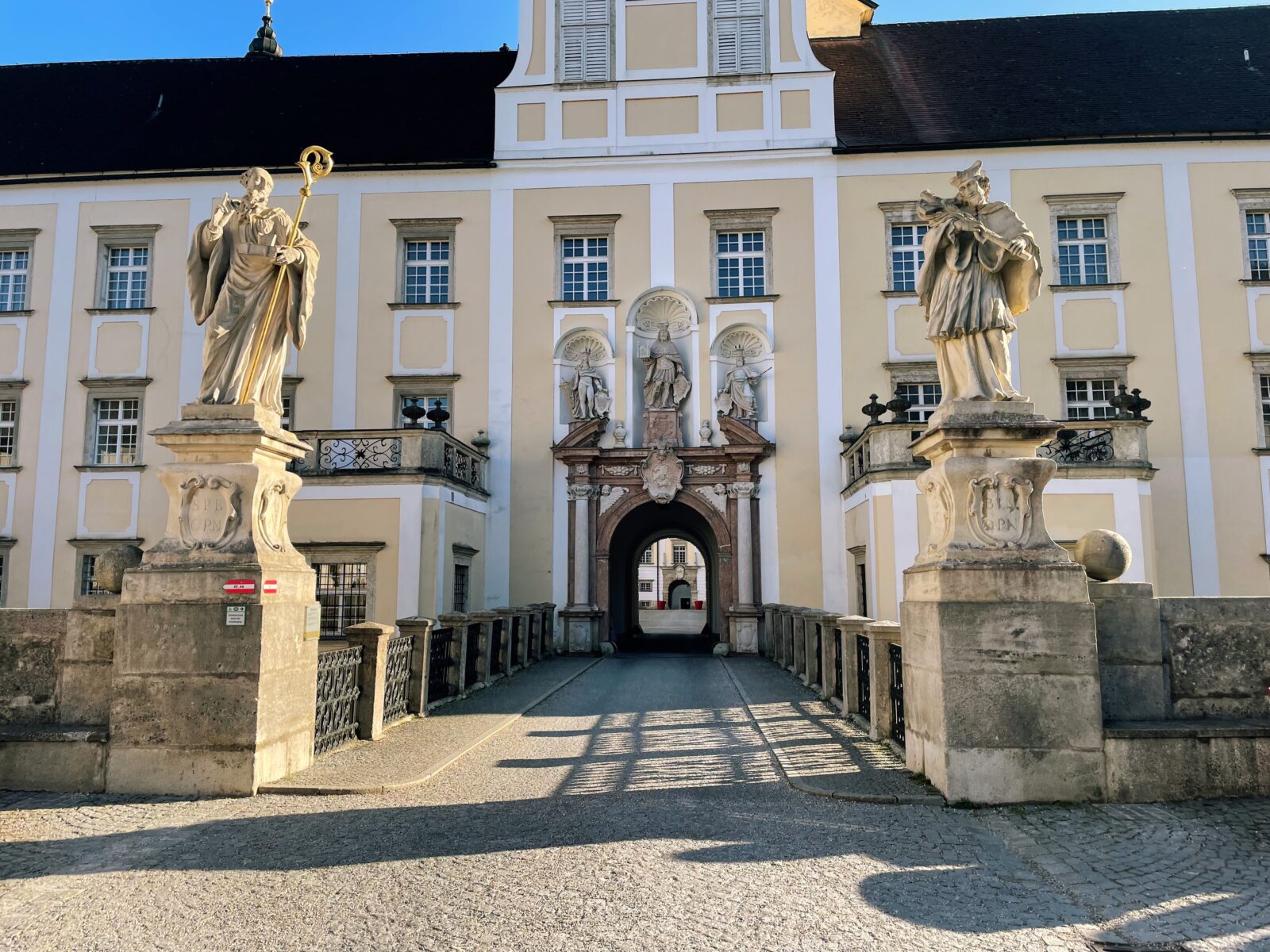 Kremsmünster is a scenic monastery town in the north of Austria, not so far from Linz. It’s usually full of busloads of pensioners to see the famous Baroque Benedictine monastery, but it was closed for repairs when I was there, so it was a ghost town. Which was kind of nice, because they let me in to see the gardens for free as much as I liked, and there was never anyone else there but a few monks and builders.