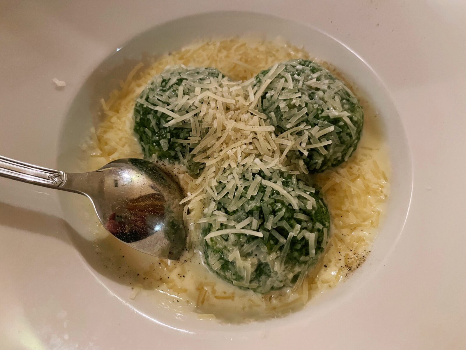 Herb dumplings with parmesan sauce. They roll you out of the pub afterwards.