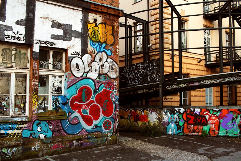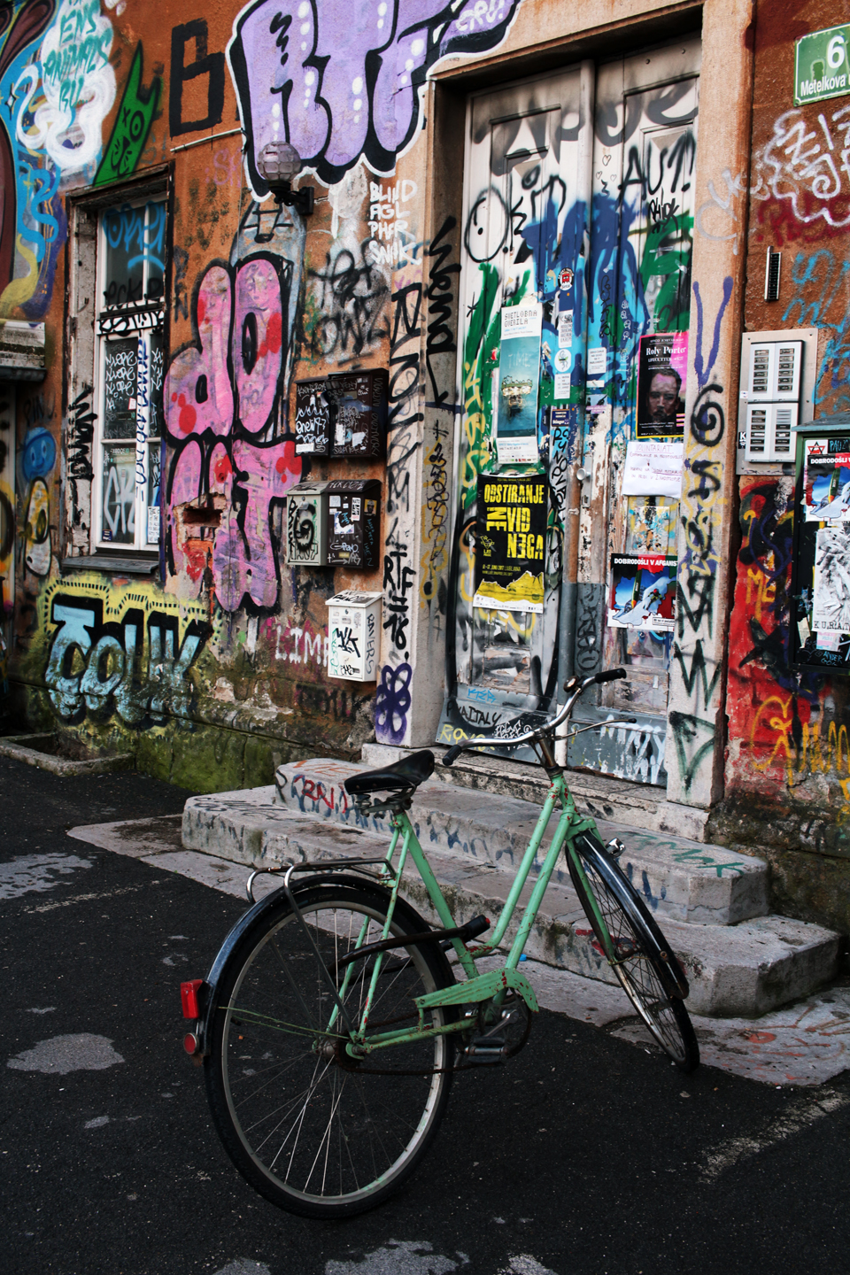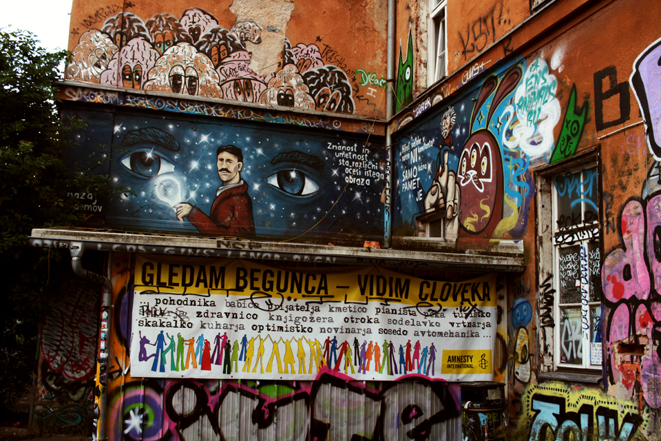 Metelkova is an area in the centre of Ljubljana that was originally a military barracks, then was squatted in the early 90s when the Yugoslav army pulled out after Slovenia declared independence, and is now full of social centres, workshops and gig venues. (And a hostel where I stayed overnight before crossing the border to Klagenfurt for work).