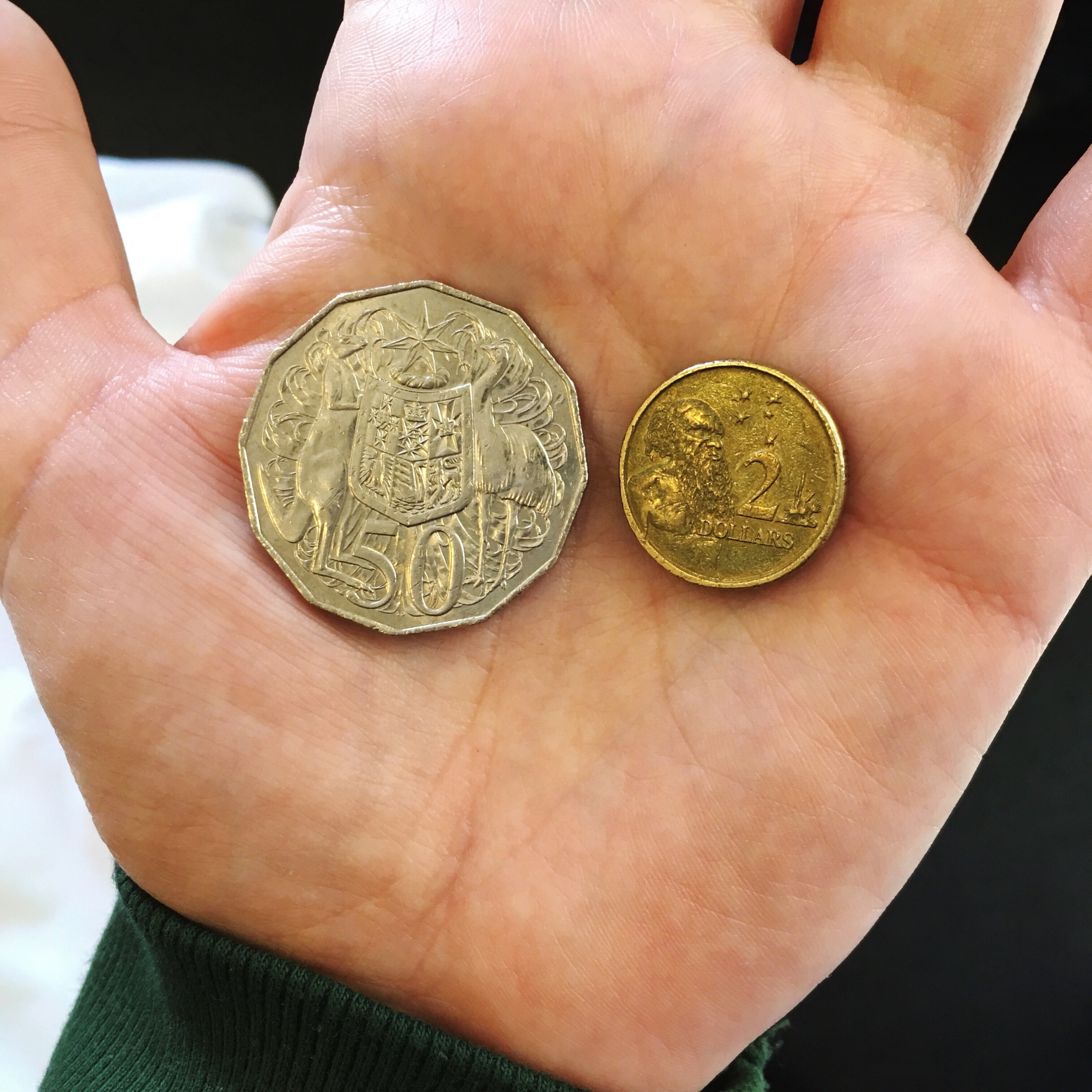 Australia is a very card and contactless based country and I rarely used cash except in some very small op shops. The 50c is huge, like an 80s 50p and worth about 25p.