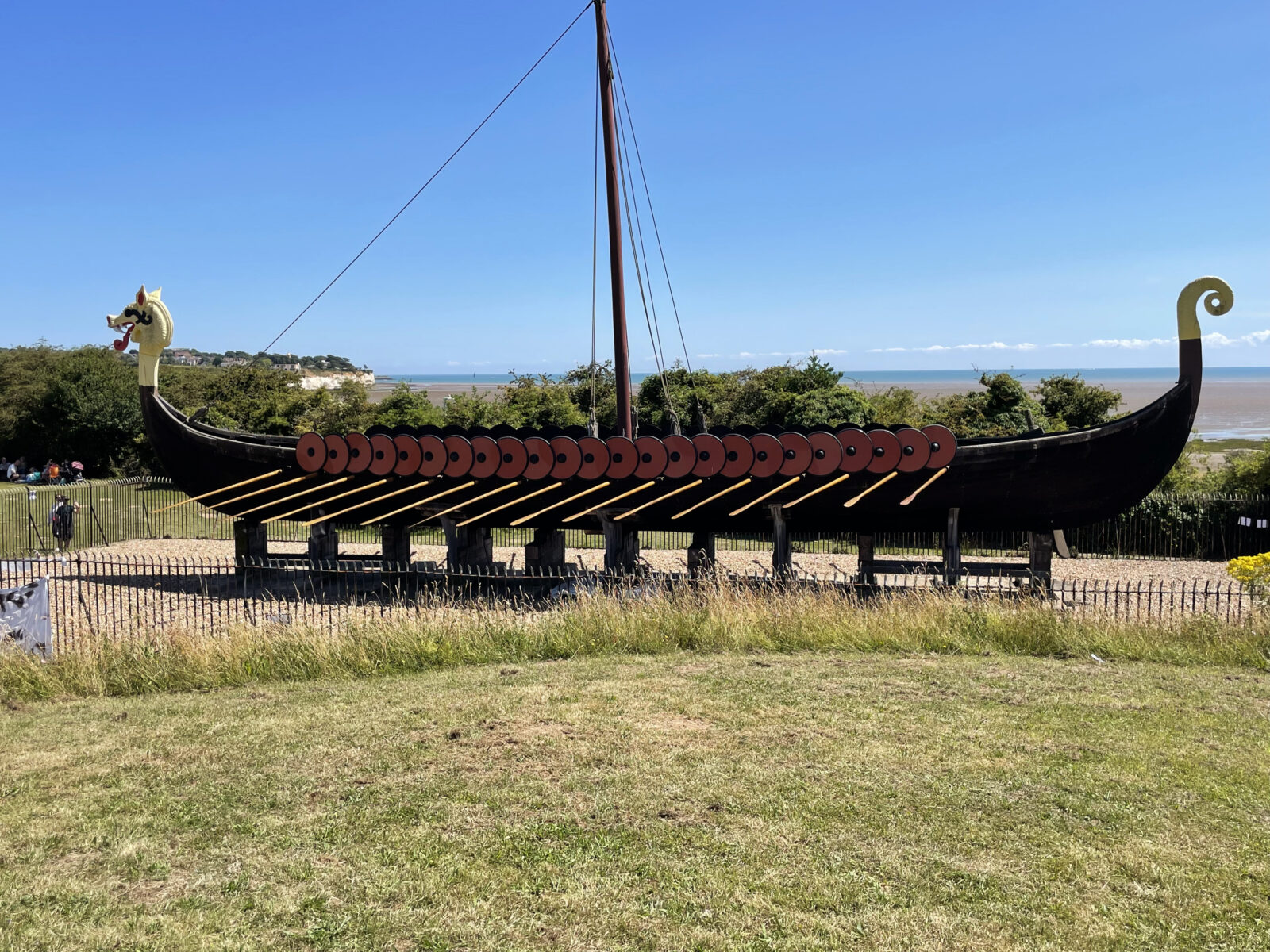 I live in an area of England that has a strong Viking influence. The Jutes came over to Kent from Jutland in the 5th Century (although there’s debate whether their legendary leaders Hengist and Horsa were real people, or transmogrified versions of Germanic horse gods), and the Vikings used Thanet as their winter base in the 9th Century. There’s a lot of local place names such as Dane Valley and Viking Bay. There’s also a replica Viking ship on the coast at Pegwell Bay, a gift from Denmark sailed over in the 50s. They regularly hold historical recreation events there with re-enactors from the Øst Centingas group (who also do Saxon and Battle of Hastings recreation).