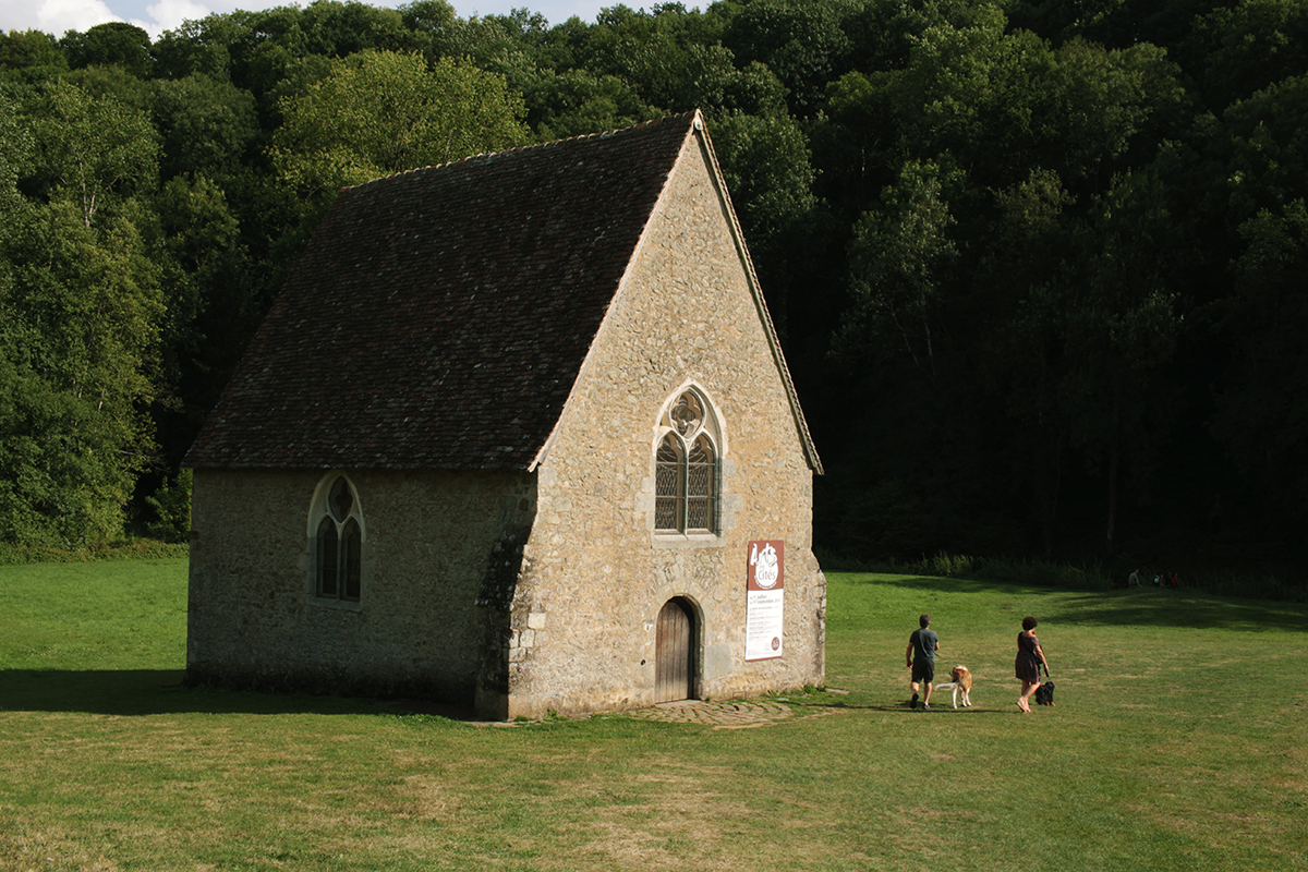 The 15th century chapel in the slightly eerie clearing by the woods where the hermit lives attracts a lot of artists. I particularly like the eerie painting by French Expressionist painter Bernard Buffet on the right (closer view of the painting available here). You can see more of his work here (website in French only). The original painting hangs in this modernist house, which is open as a museum.