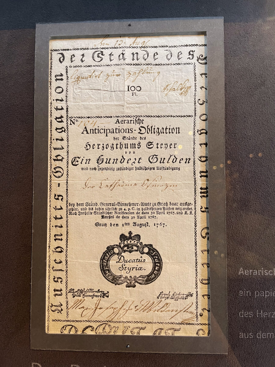 This banknote is about as much money as a peasant would see in a year. No wonder it’s so huge. Even 150 years later, Kafka was only getting 80 per month at the insurance company.