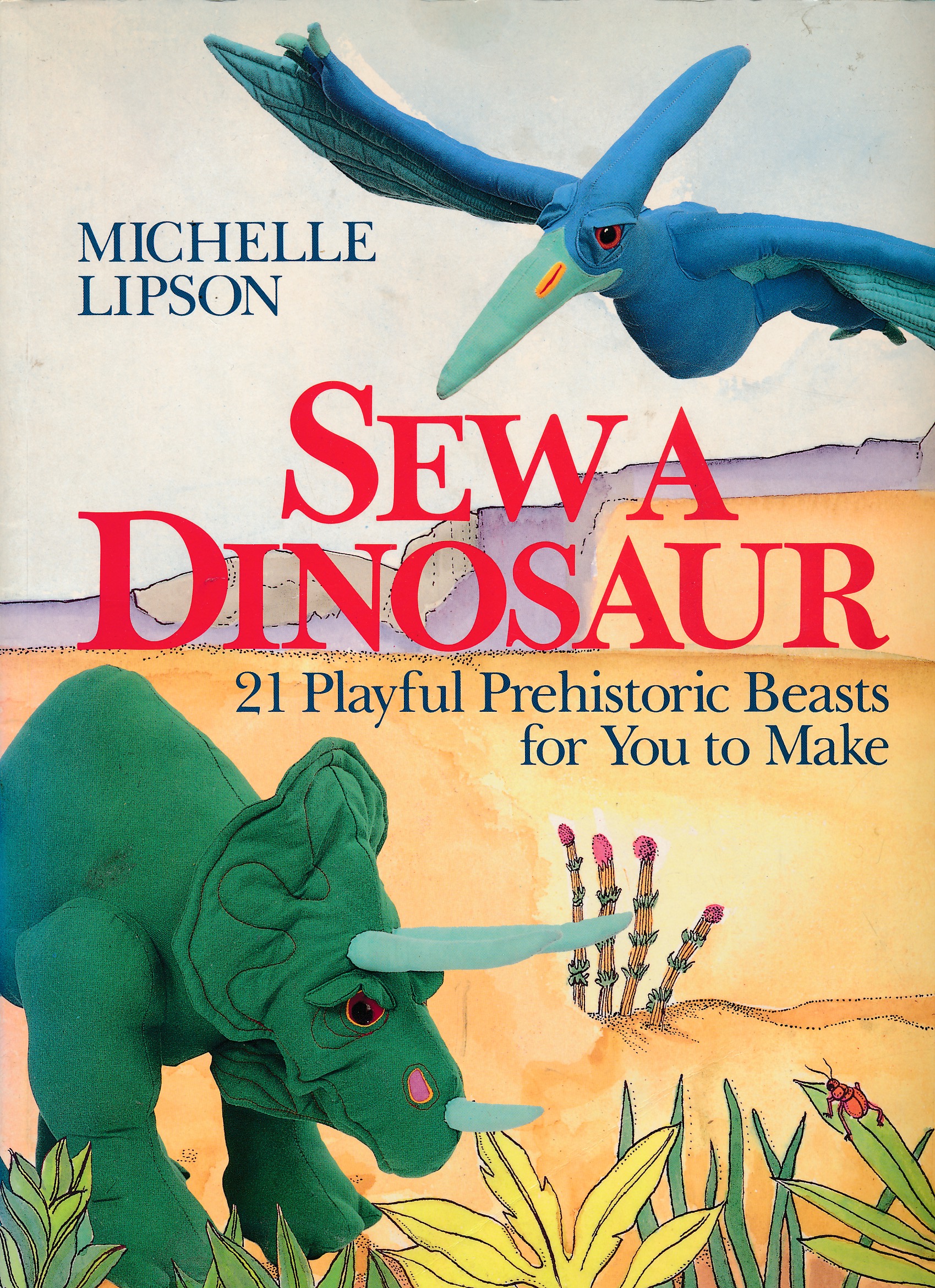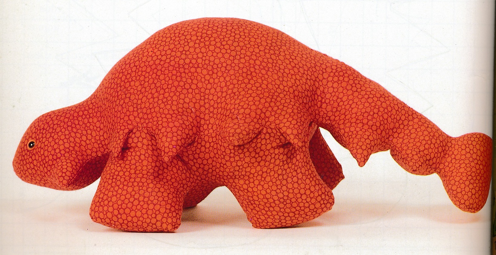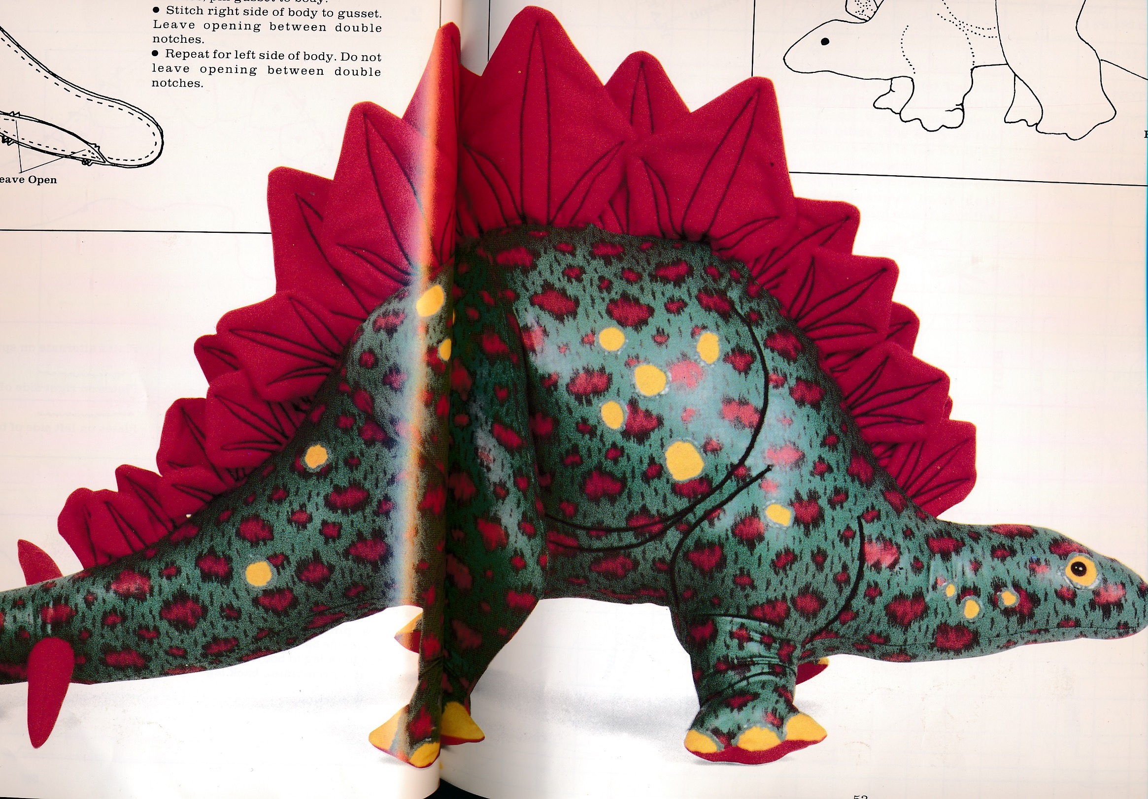 Let’s not forget however the toy dinosaur my nan made long before I got the book. She clearly adapted an elephant pattern. He used to have pink felt spikes on his back too.