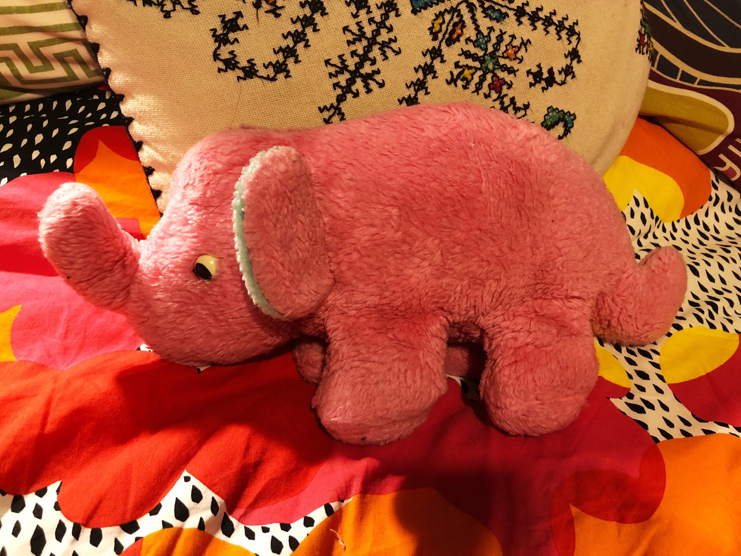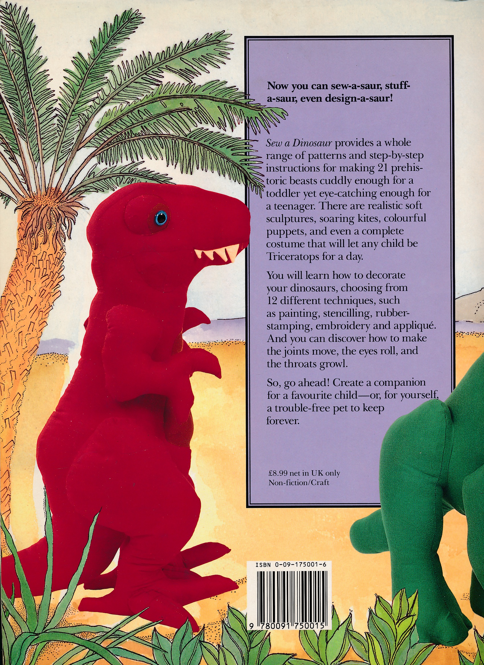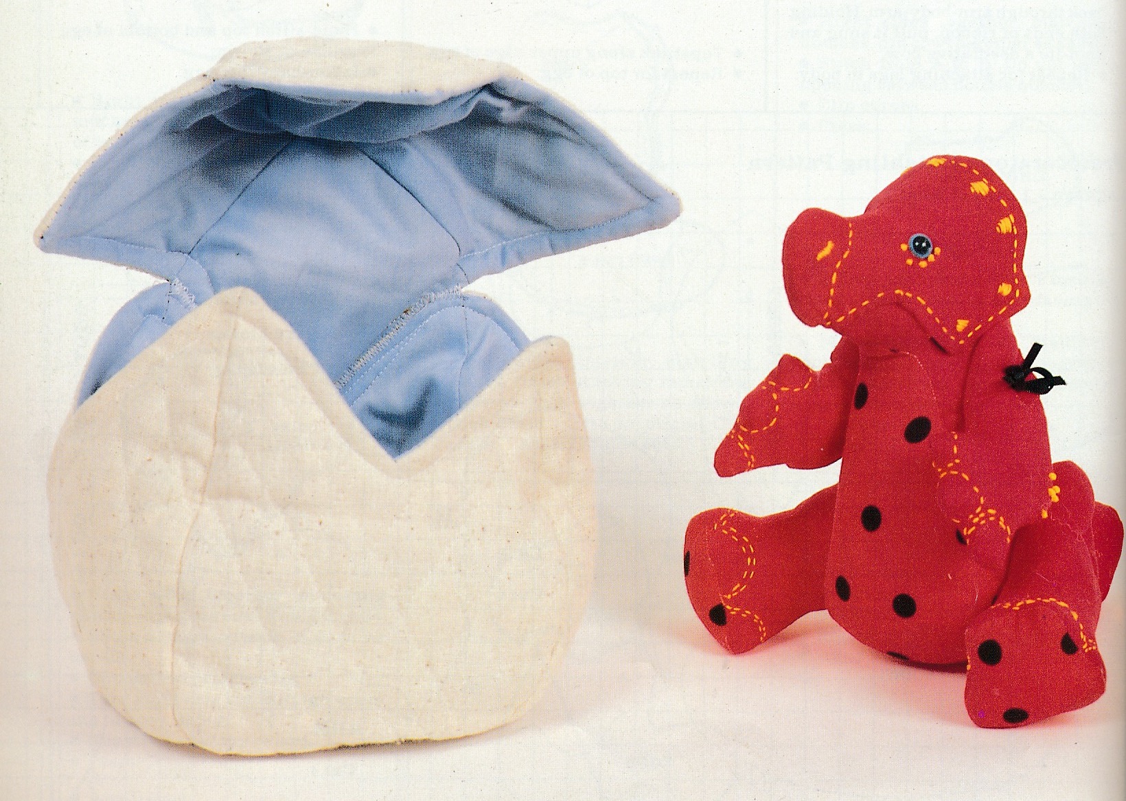 Let’s not forget however the toy dinosaur my nan made long before I got the book. She clearly adapted an elephant pattern. He used to have pink felt spikes on his back too.