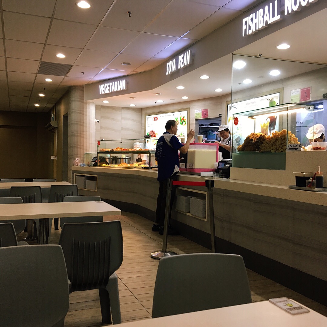 Food court setups with a circle of stalls surrounding a common seating area are very common in Singapore- they have both indoor and outdoor versions. All of them have Malaysian, Chinese and Indian food options, and lots of them have specialist stalls for particular items. I went for the vegetarian Chinese counter in the airport canteen.