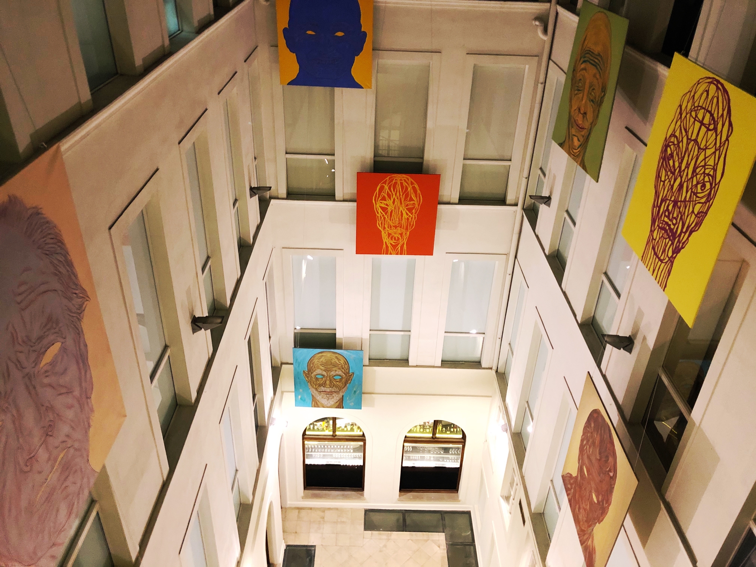 The atrium is open from the ground up to the third floor. I got some serious vertigo taking this photo from a balcony on the top floor.