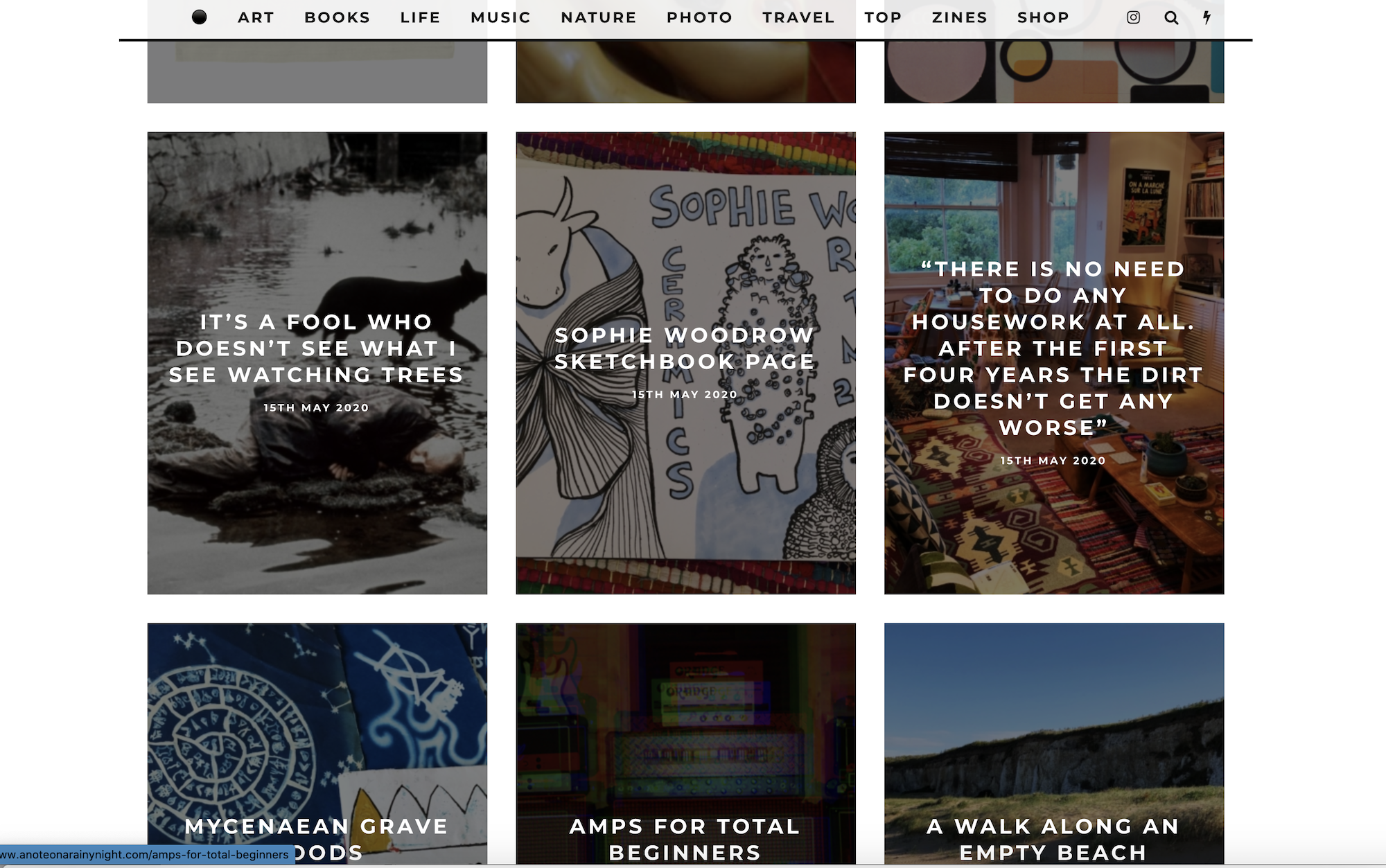 My original layout was a simple feed of all blog posts, with a side bar with various widgets in it. I realised I wasn’t that keen on the sidebar, it looked cluttered and took away space from the actual photos I was posting. So it got the chop and the entries took full screen. I hate it when you’re trying to read something online and there’s loads of autoplaying videos and animating sliders drawing your eye away.