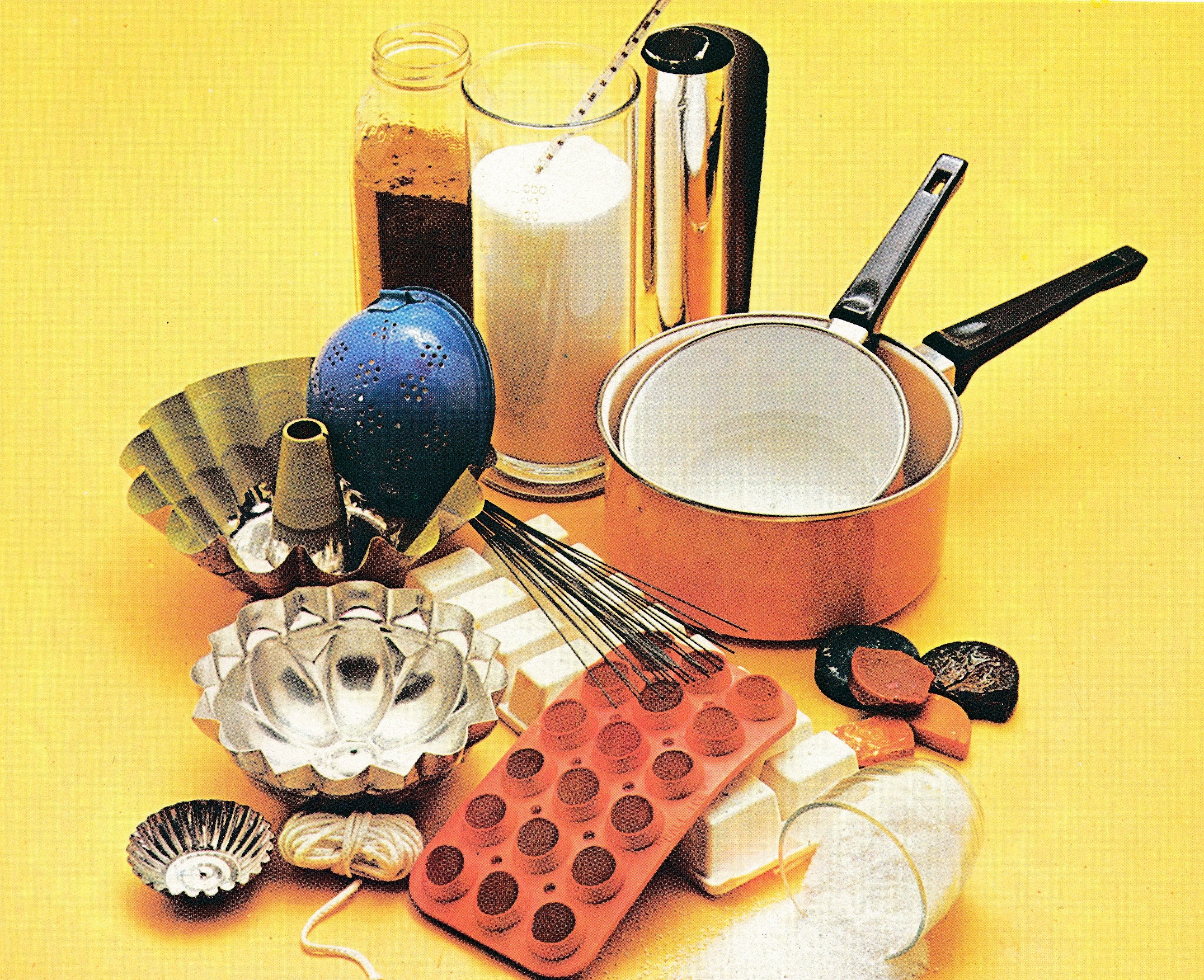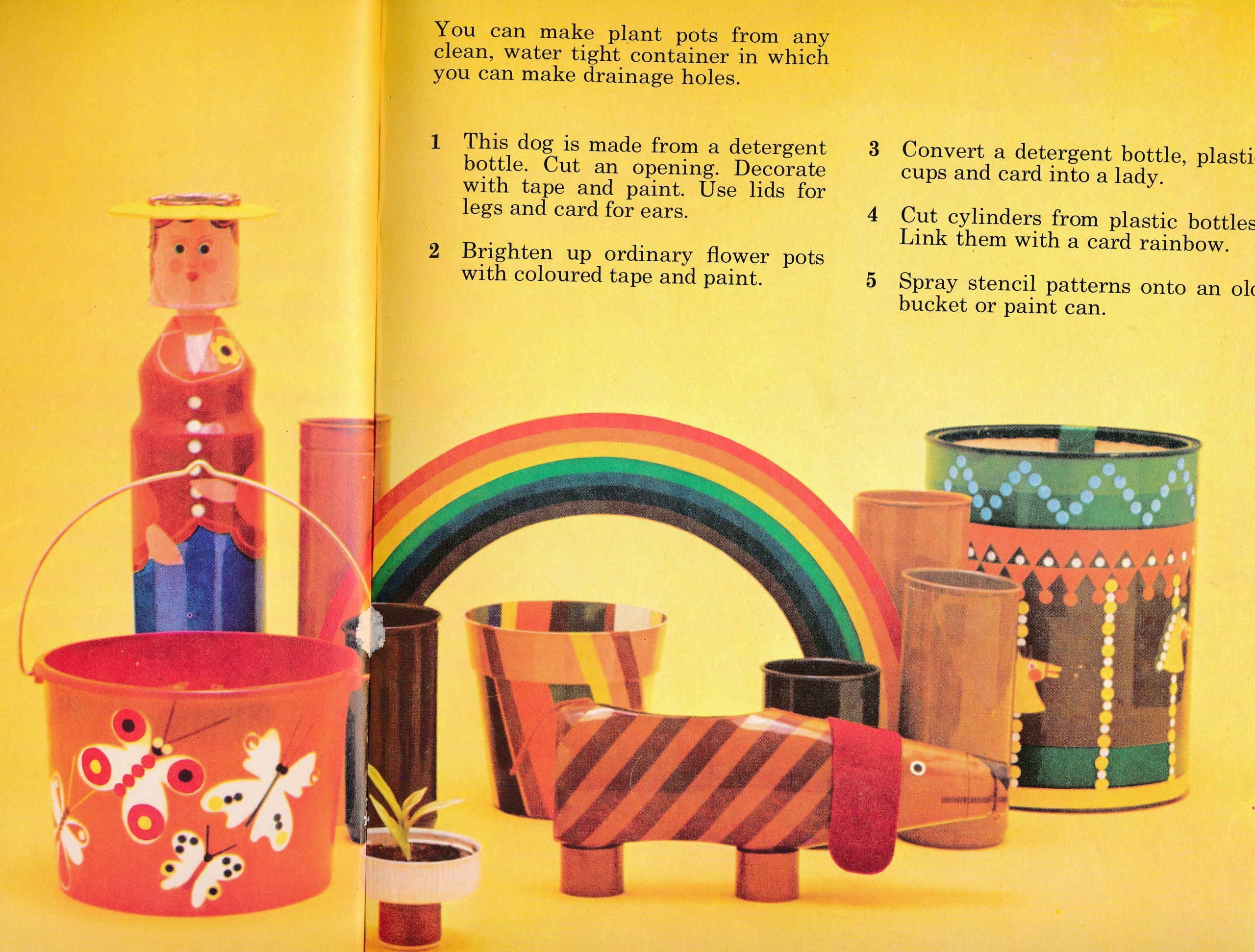 Another charity shop book- this time from the 70s. It’s a slightly strange mix of technicolour things made from recycling bin objects or fabric scraps, and then a section about making candles.