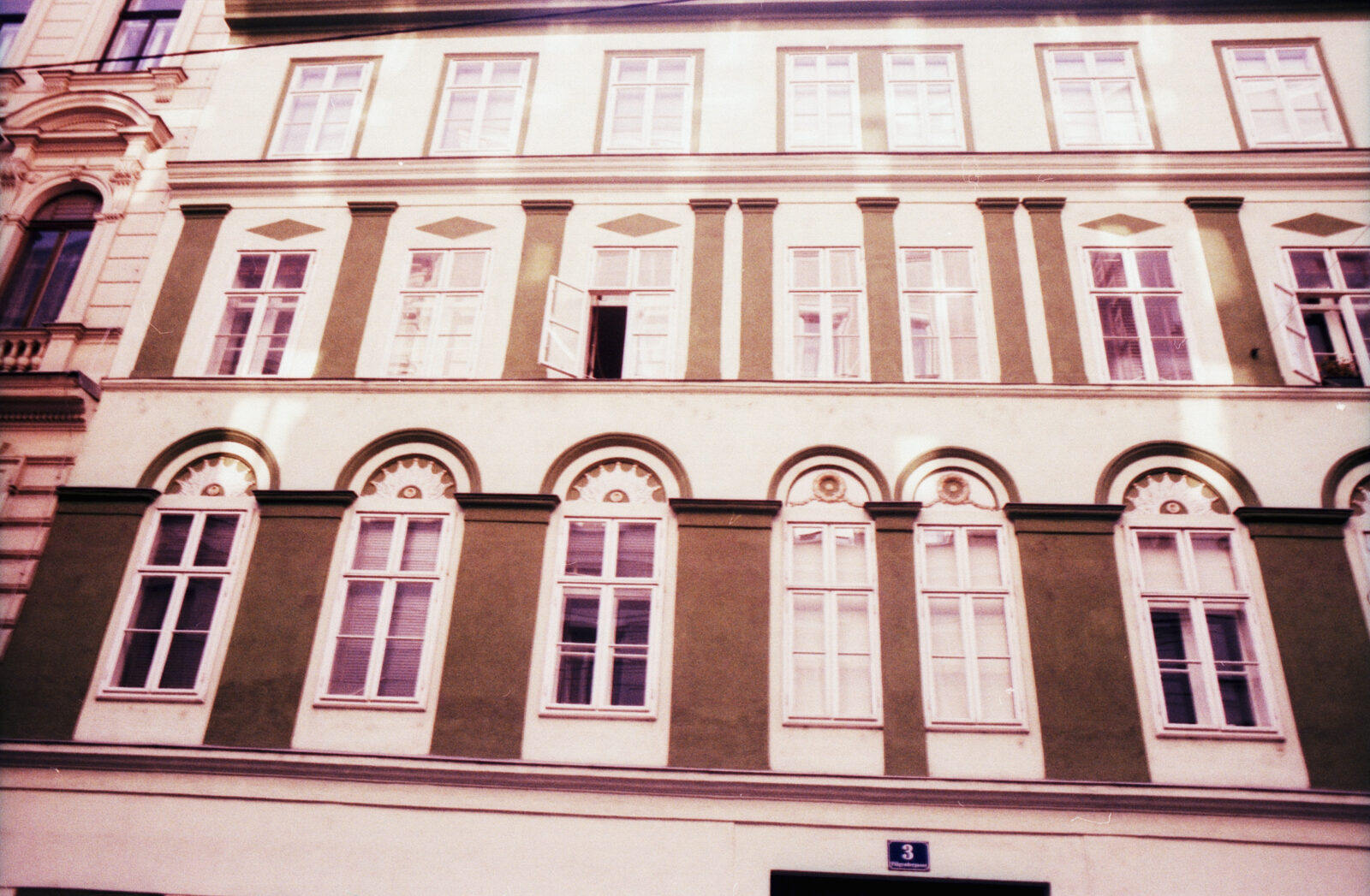 Some Fuji Sensia cross-processed in C41 chemicals. I’m not sure what camera it was, probably an Olympus XA2. Mostly taken around the Burggarten palmhouse.